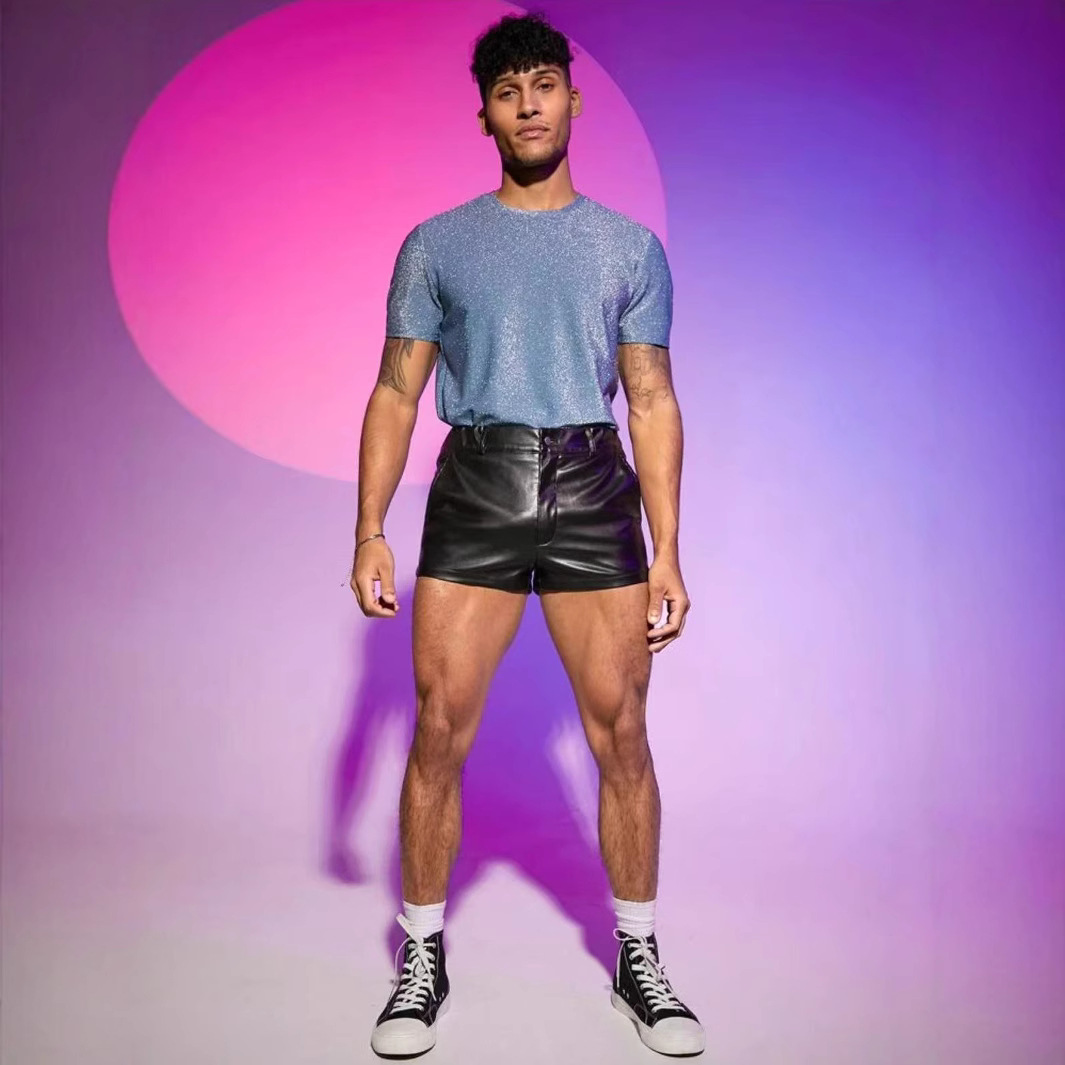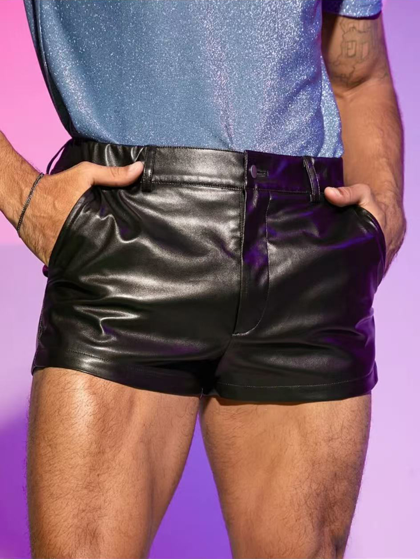 Трансграничные новые европейские и американские шорты из пуговой кожи для мужчин на улице супер шорты для летнего стройного отдыха короткие кожаные брюки