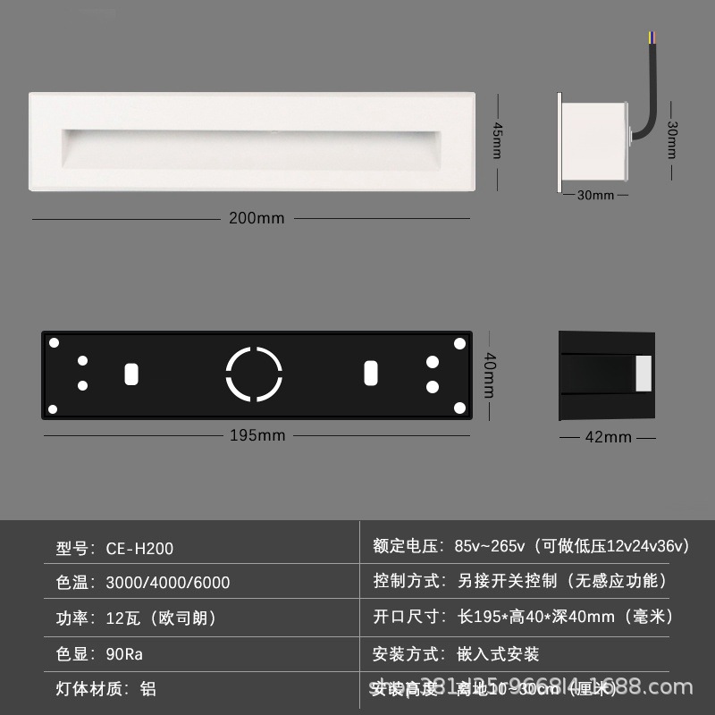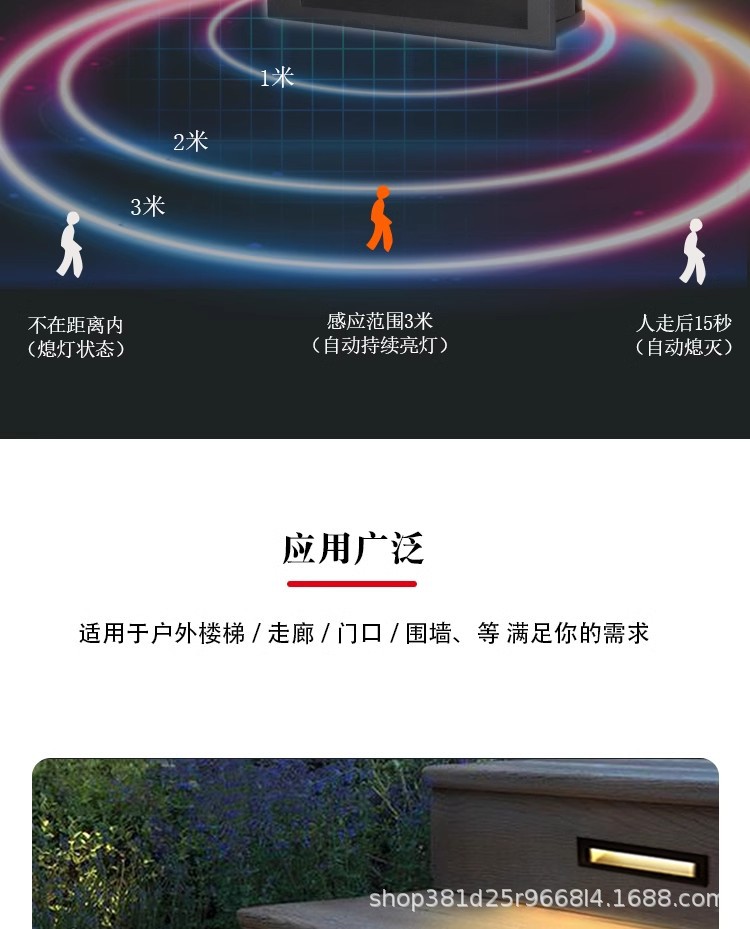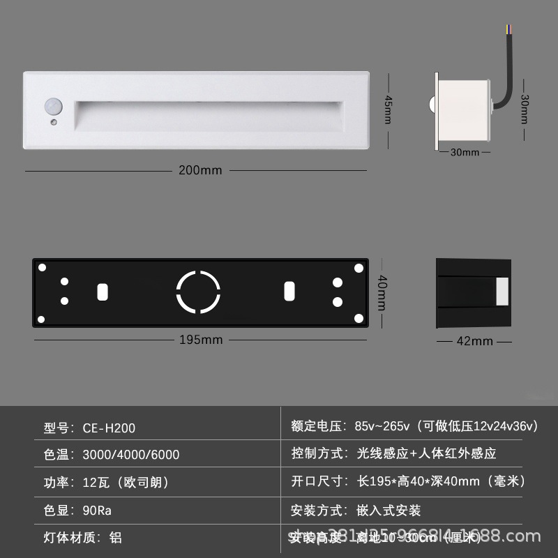 Алюминиевый горизонтальный светодиодный светильник для ступеней вилл, дорожек, уличный водонепроницаемый угловой светильник с датчиком, водонепроницаемый для улицы