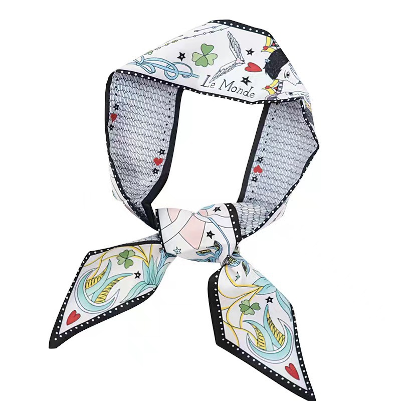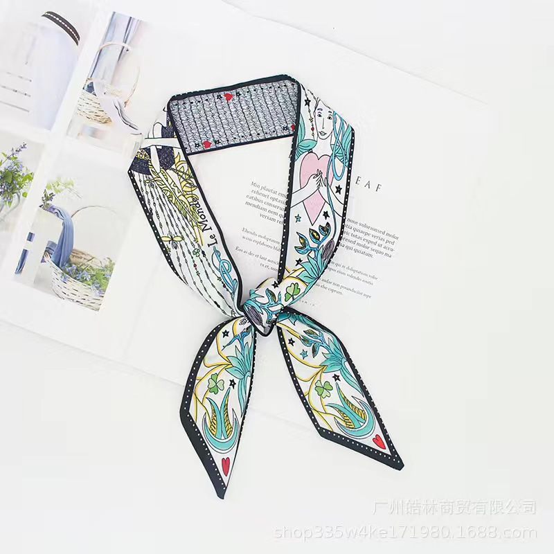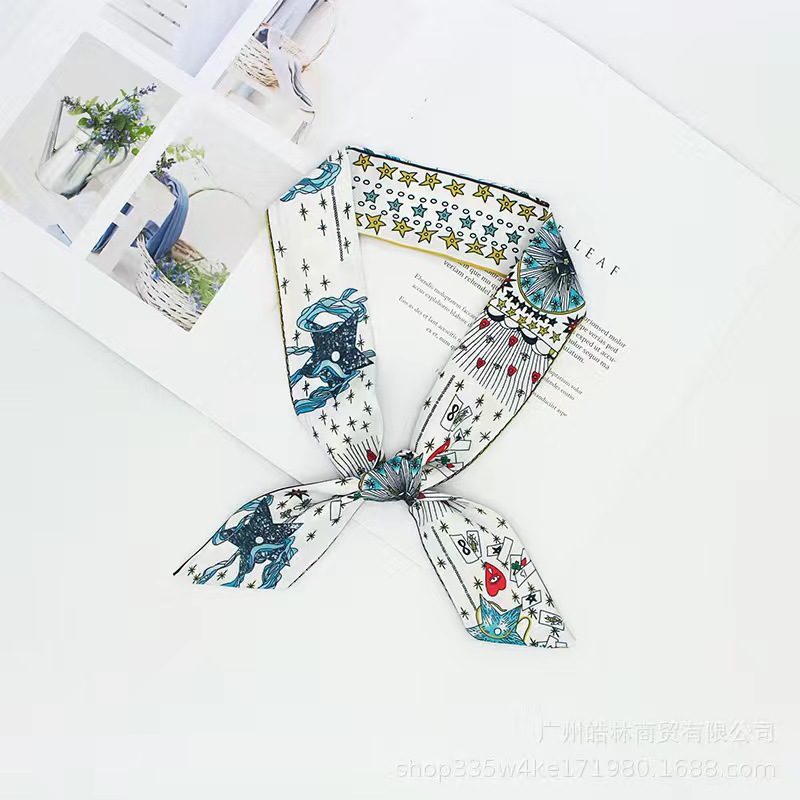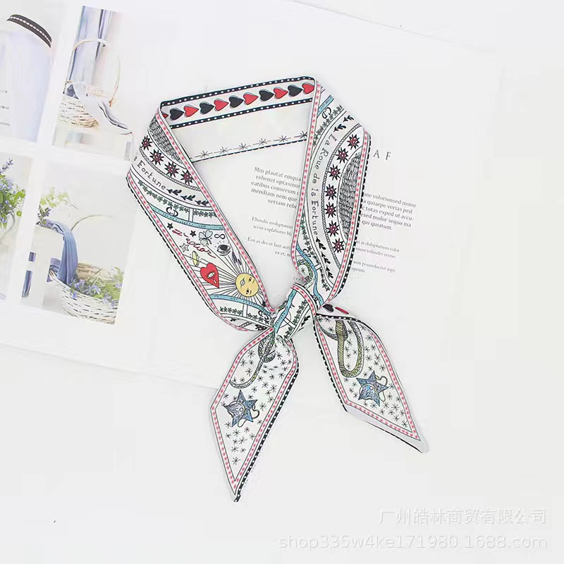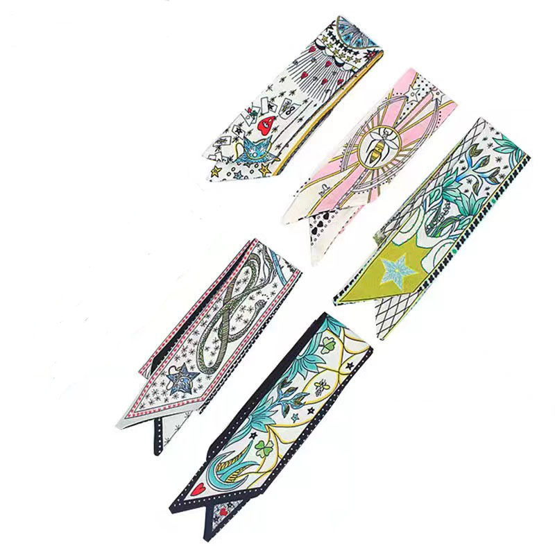 Шелковый шарф с двусторонней печатью в стиле карт Таро, длинный шарф, аксессуар для сумки, маленькая лента, женский, креативный шарф для шеи, популярный среди интернет-знаменитостей