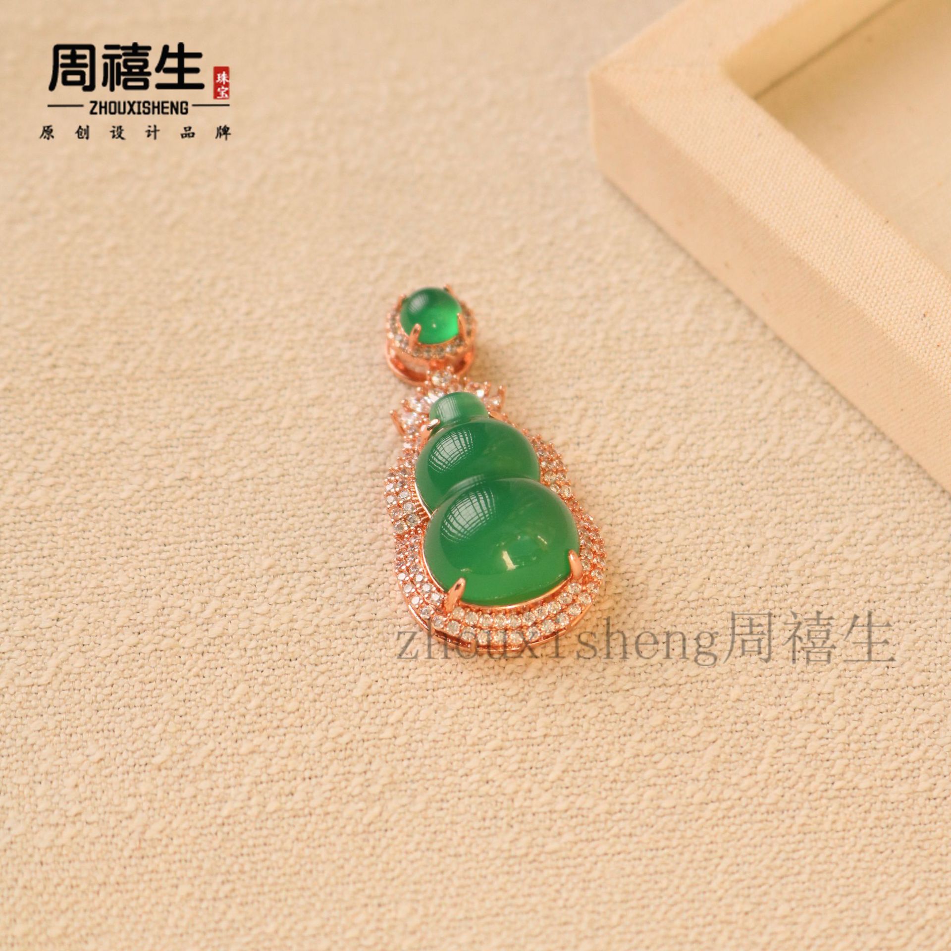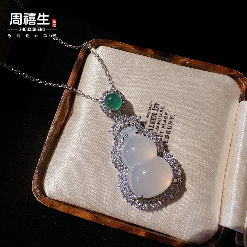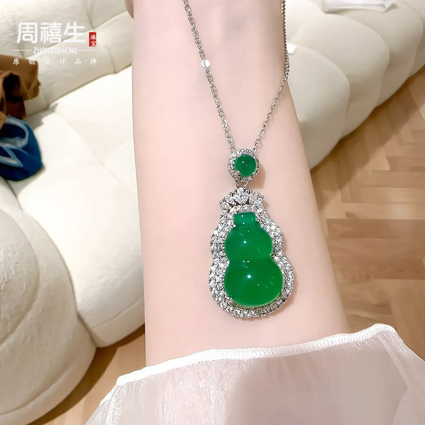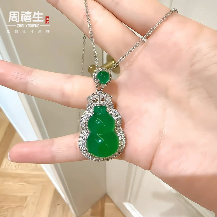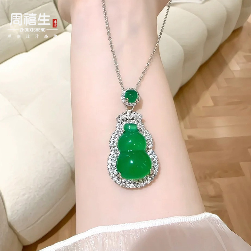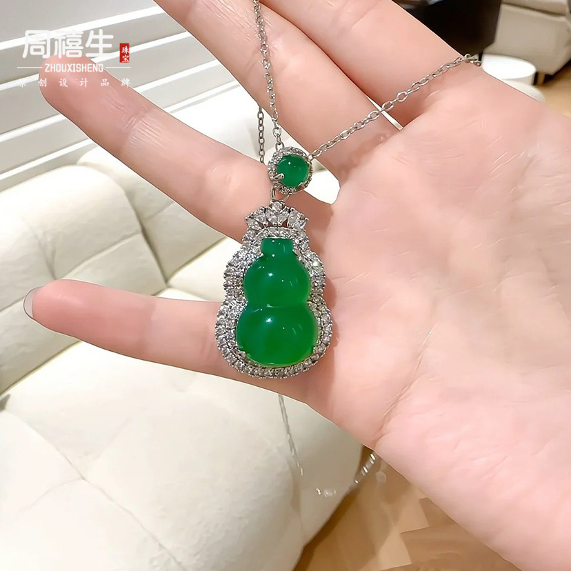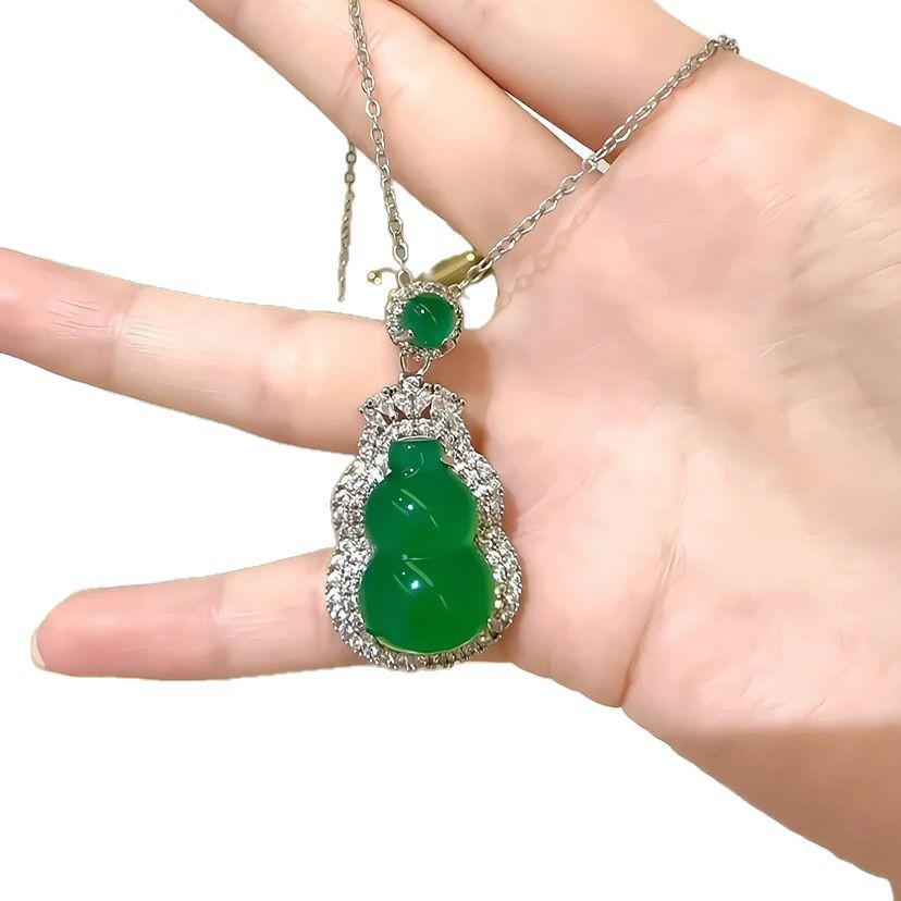 Ледяной зеленый халцедон тыквы кулон Император зеленый агат ожерелье изумрудный цвет ключицы сети красная дрожь в прямом эфире