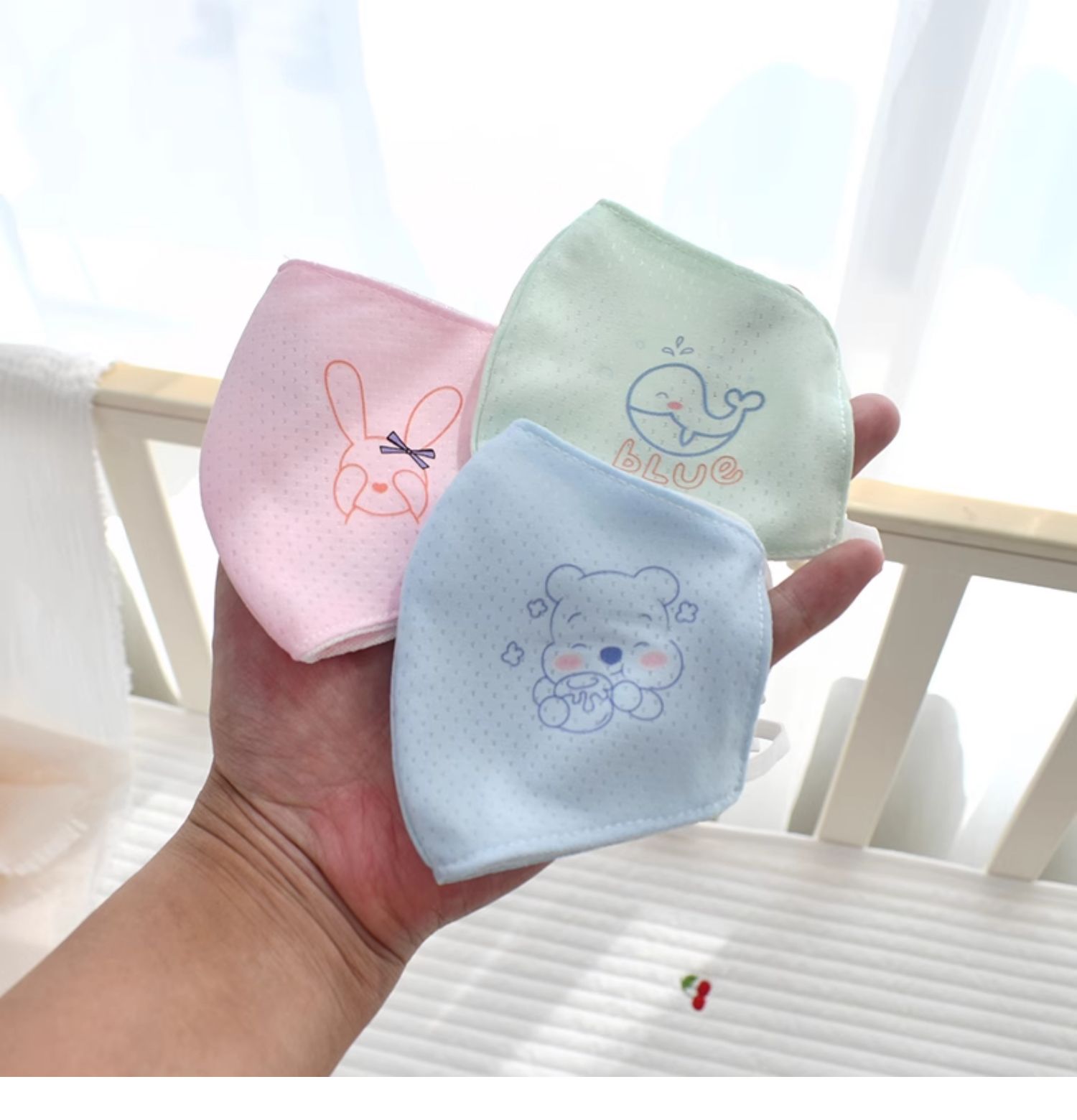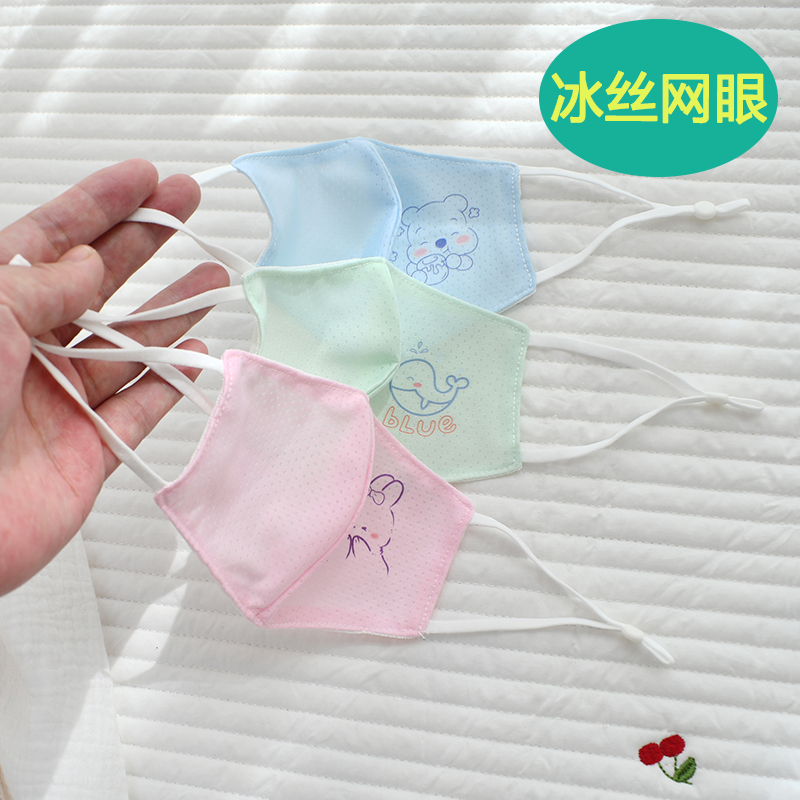 Детская маска из чистого хлопка, весенне-осенняя моющаяся ледяная шелковая солнцезащитная маска, дышащая тонкая детская стерео маска для младенцев, тонкая летняя маска