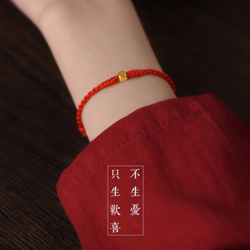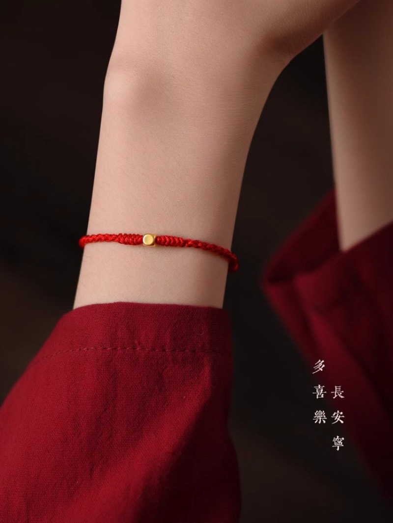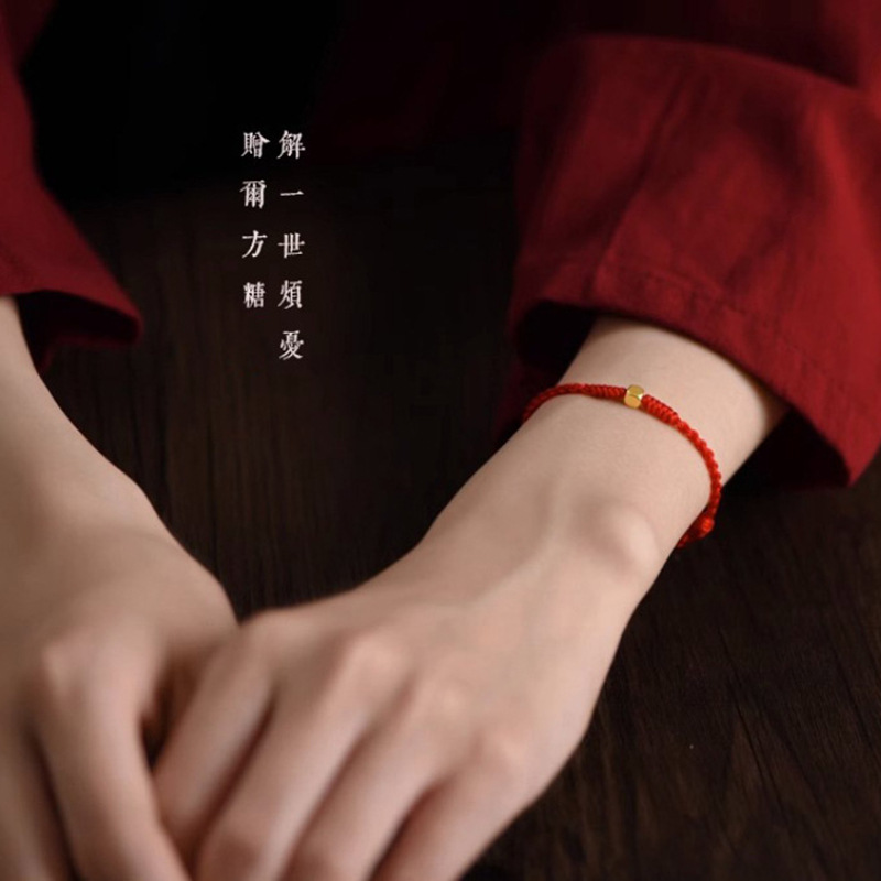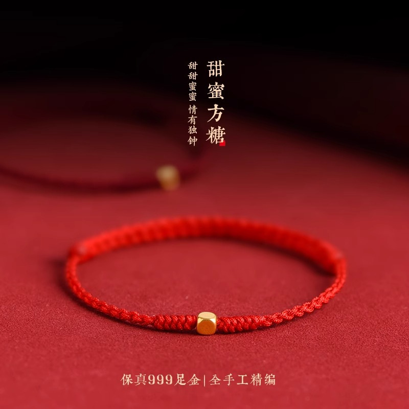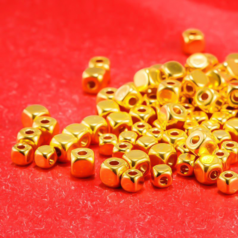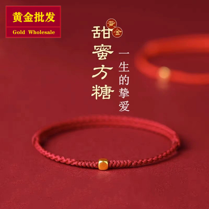 Оптовая продажа браслета из чистого золота 999 пробы в форме кубиков сахара с бусинами для переноса, талисмана на удачу, парного браслета для пары