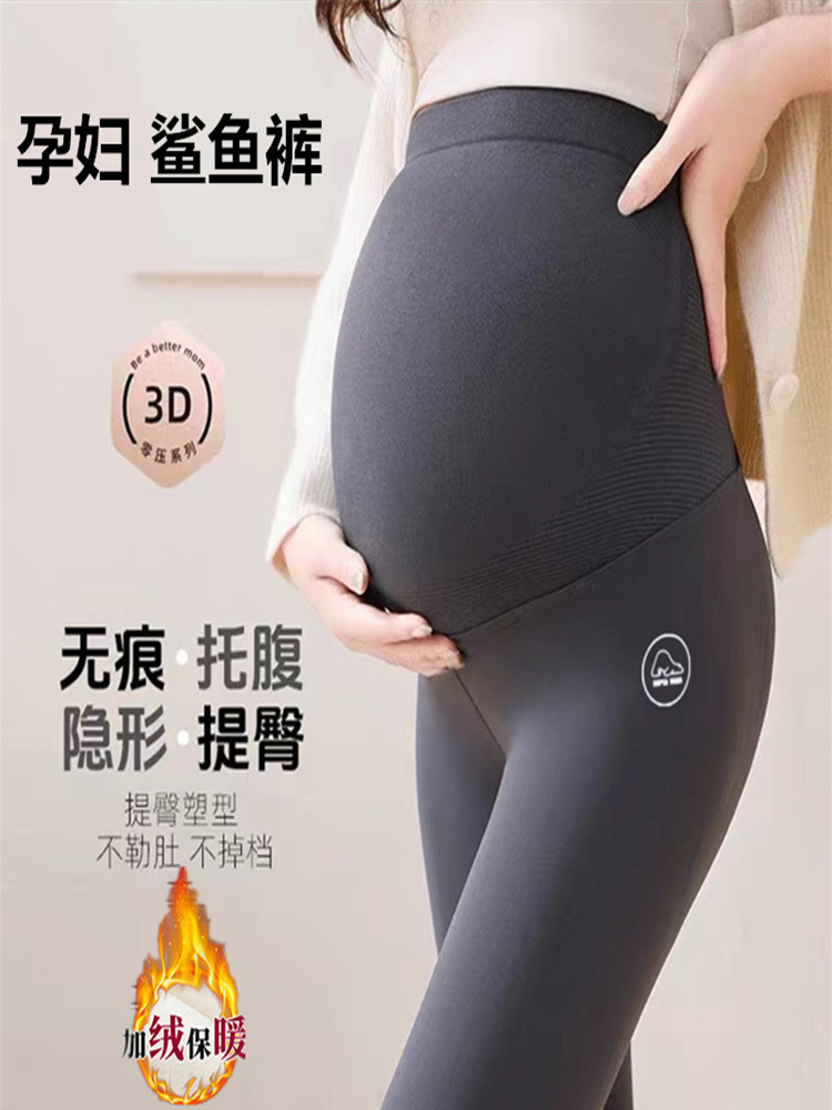 Брюки акулы для беременных весенне-осенние бархатные утолщенные тонкие брюки с высокой талией для беременных теплые штаны для йоги леггинсы для верхней одежды зимой