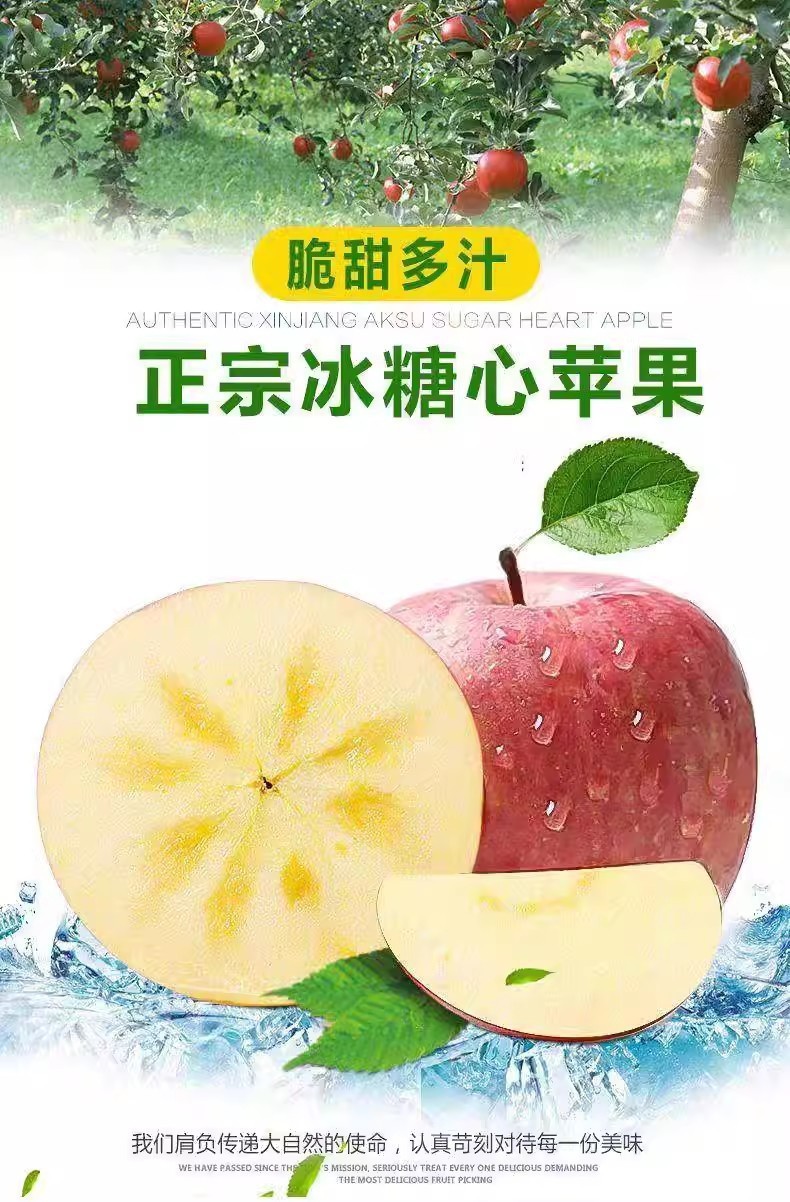 Сезонный рок-сахар в форме сердца Синьцзян Аксу, свежие красные яблоки Фудзи, неуклюжие яблоки, свежие фрукты, целая коробка, оптовая продажа, бесплатная доставка 0.5kg