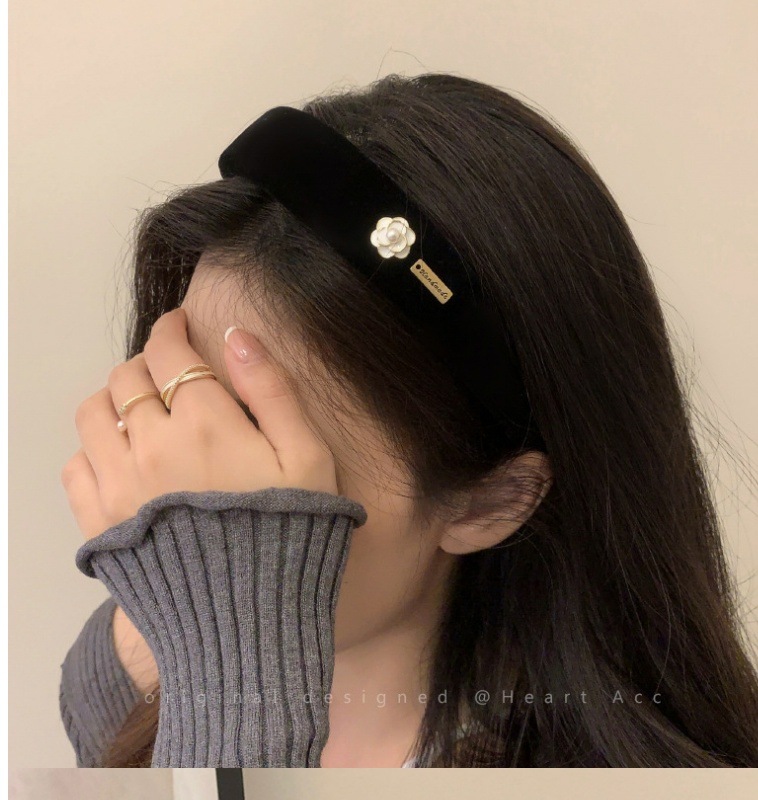 Little Xiangfeng Ретро минималистский цветок черный бархатный обруч для волос женский дикий темперамент вне моды простой головный обруч для волос