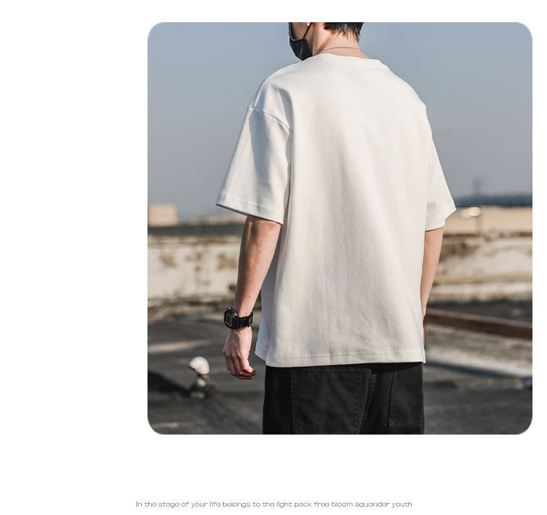 Хлопок тяжелый вес свободный хлопок белый с короткими рукавами рубашка мальчиков сплошной цвет футболки мужской одежды в стиле Гонконга