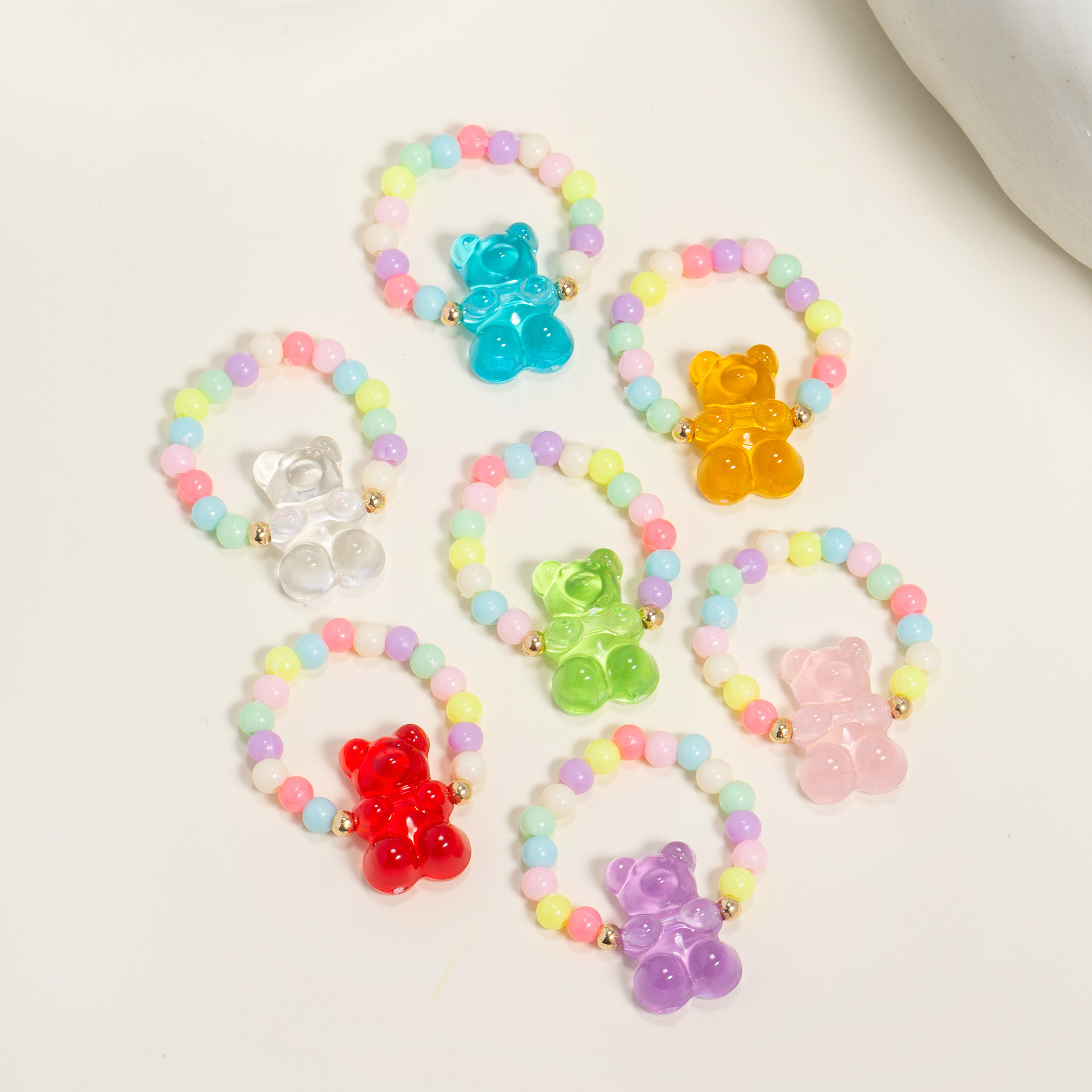 Симпатичный цвет желе азиатская смола маленький медведь с бисером кольцо набор цветных нишевых девочек кольцо для рук ювелирные изделия оптом