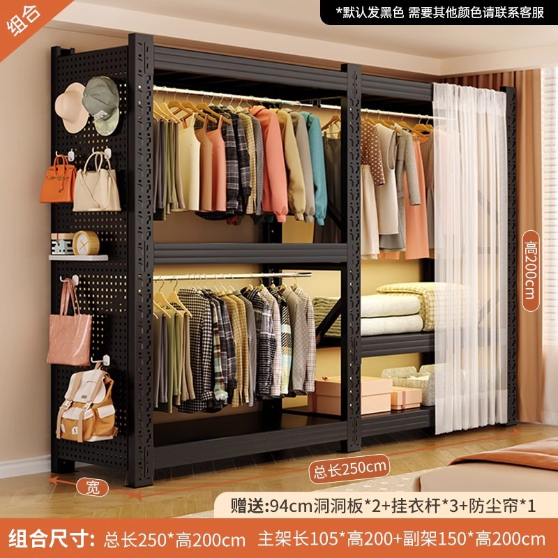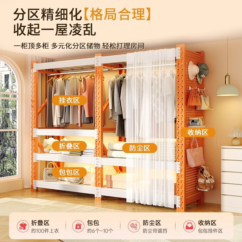 Домашние полки шкафы Простая сборка открытая вешалка стальная стойка пылезащитная штора многослойная полка для хранения