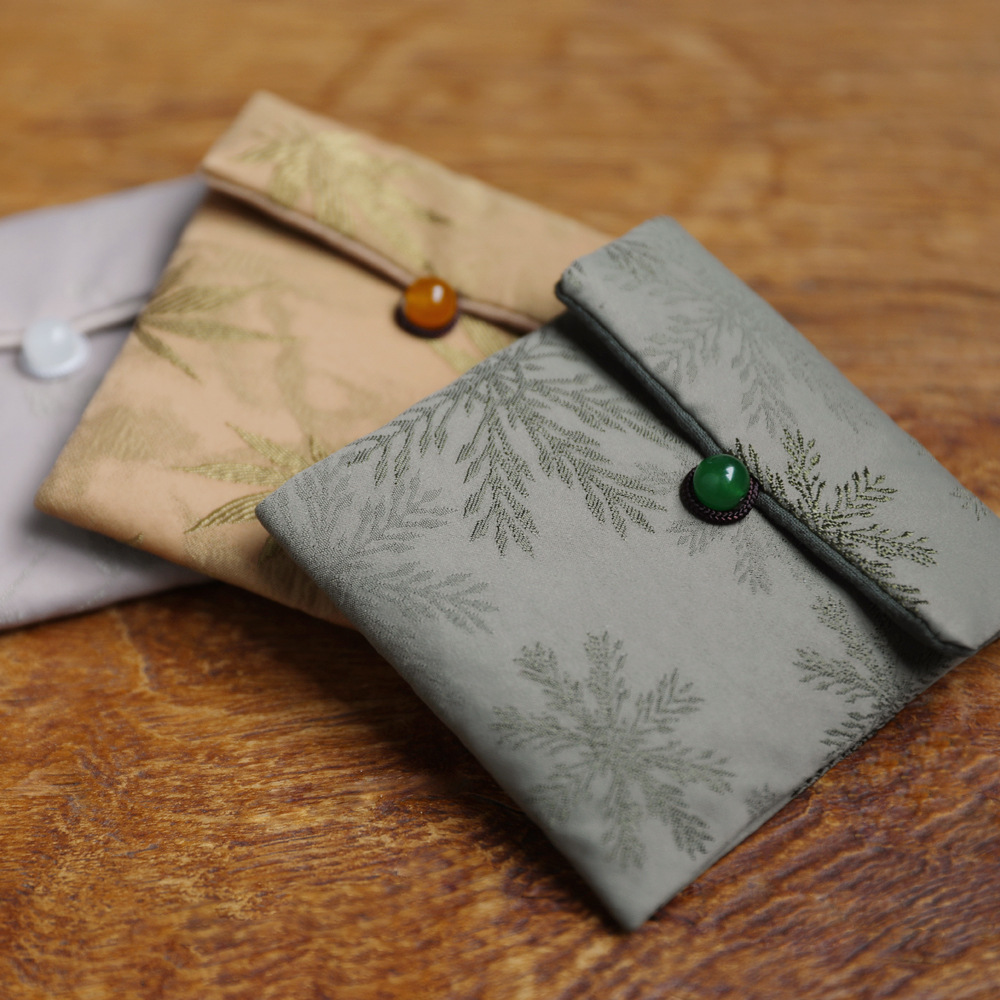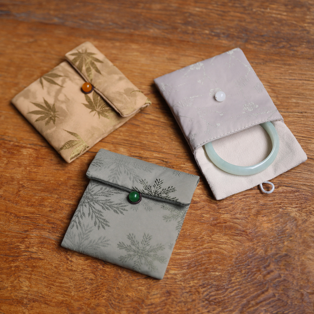 Сумка для игрушек из кленового листа (10см×10см); Сумка для игрушек «Снежинка» (10см×10см) зеленоватого цвета; Сумка для игрушек «Цветок сливы» (10см×10см) кремово-серого цвета