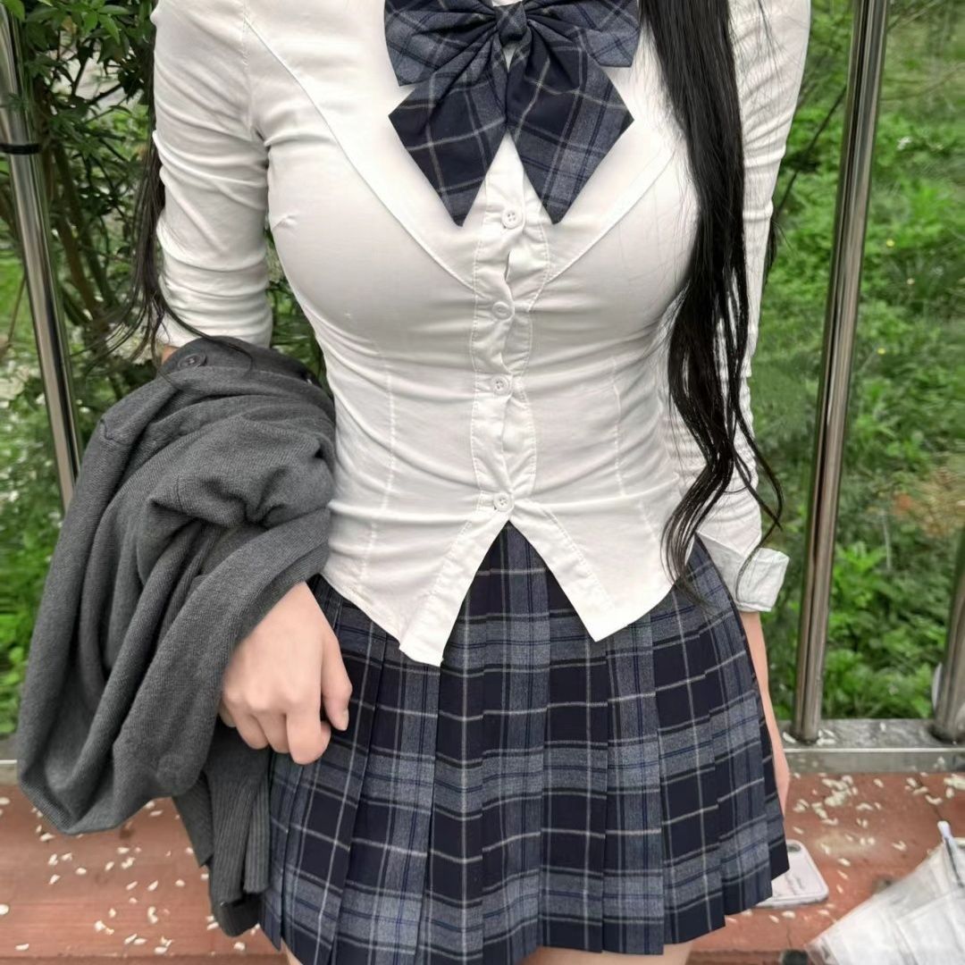 Оригинальный ночной летний подлинный jk униформа женская целая юбка-рубашка с поясом