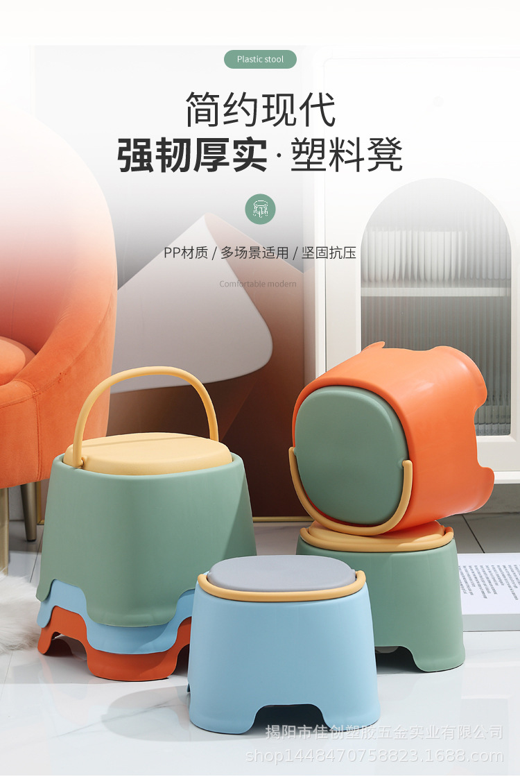 Маленький табурет, пластиковый стул, табурет для смены обуви, бытовая маленькая скамейка, детский низкий табурет, табурет для обуви с ручкой, квадратный табурет для детского сада, штабелируемый