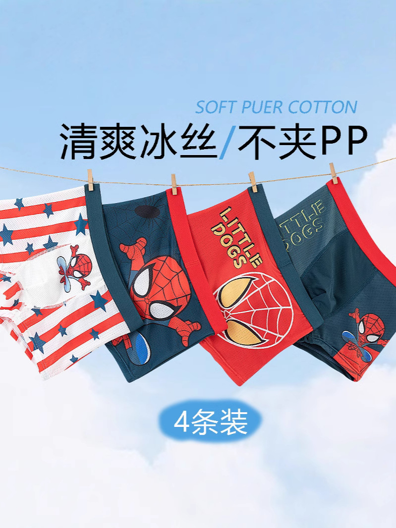 Оптовая продажа летних детских трусиков для мальчиков средней талии и детей среднего возраста тонкие ледяные шелковые антибактериальные дышащие четырехугольные брюки