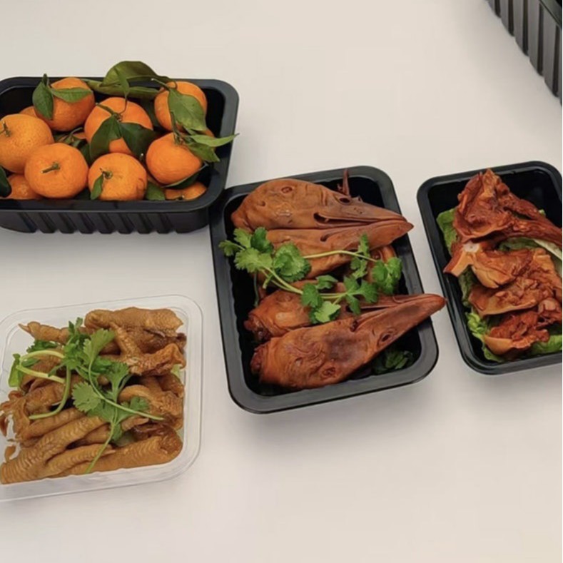 公司最新产品锁鲜牛排牛扒包装盒,一次性塑料生鲜鸡包装盒,耐低温速冻,耐高温杀菌蒸煮,可以充氮气封口,也可以定制款式颜色,深受国内外食品生产企业的好评!