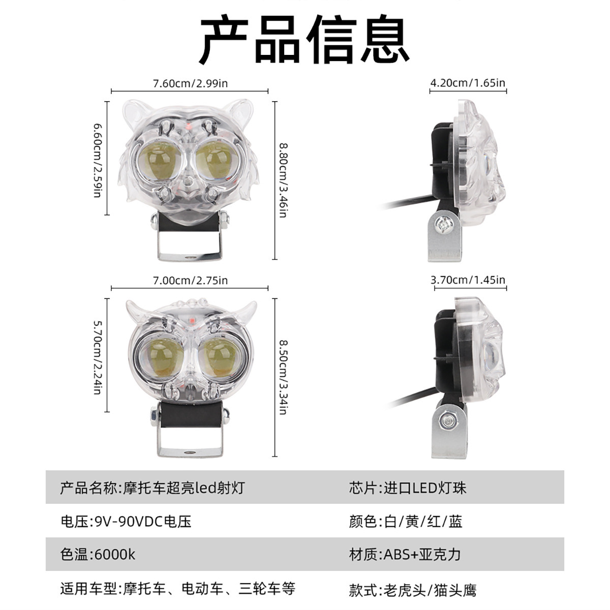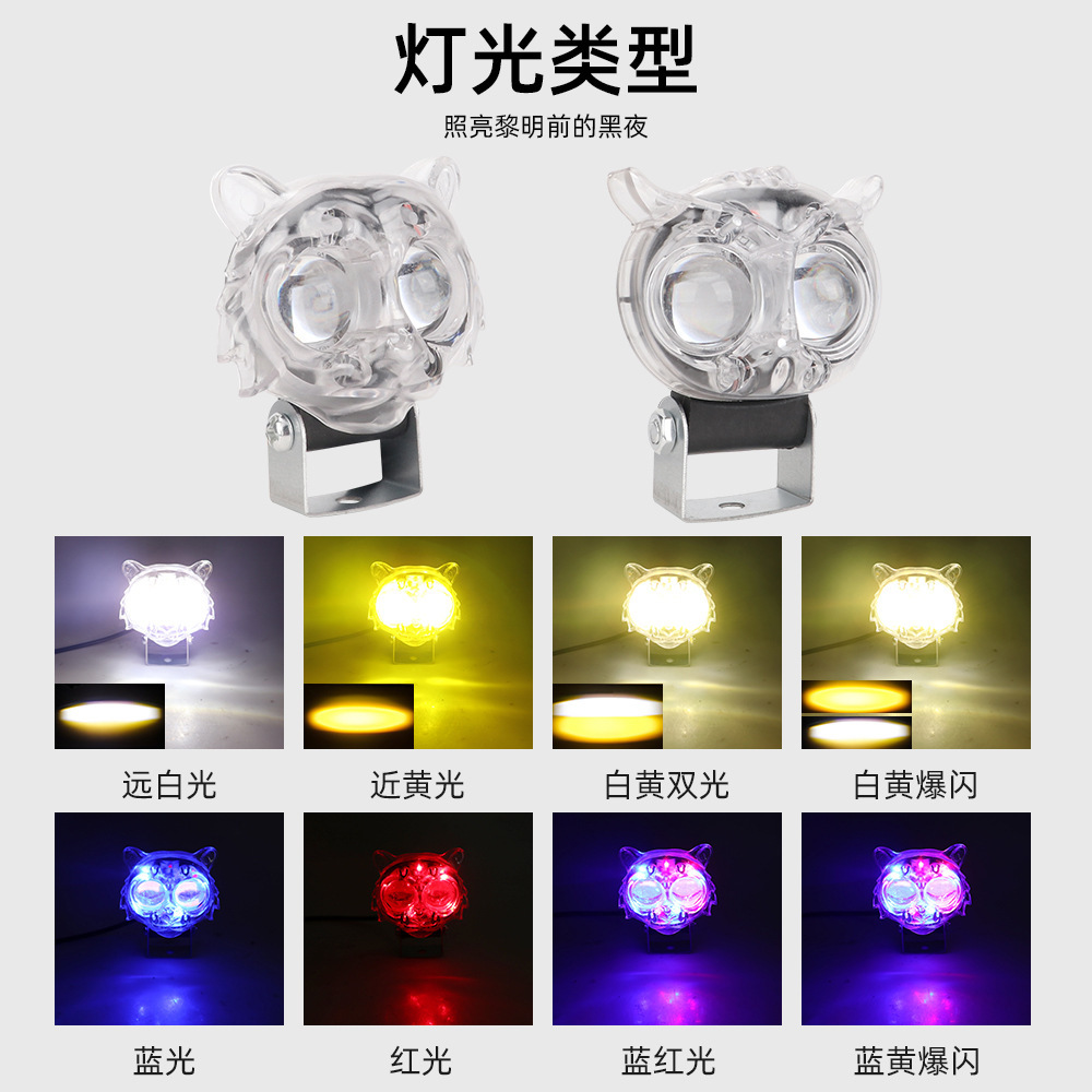 Трансграничный мотоцикл передний светодиодный прожекатель красочный сова тигр прожекатель электромобиля модифицированные фары