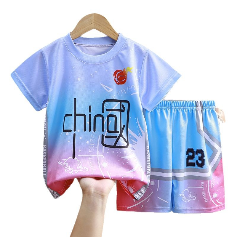 Детский спортивный костюм Летний мальчик Студенческий быстрый сухой костюм с короткими рукавами шорты для девочек Баскетбольный костюм