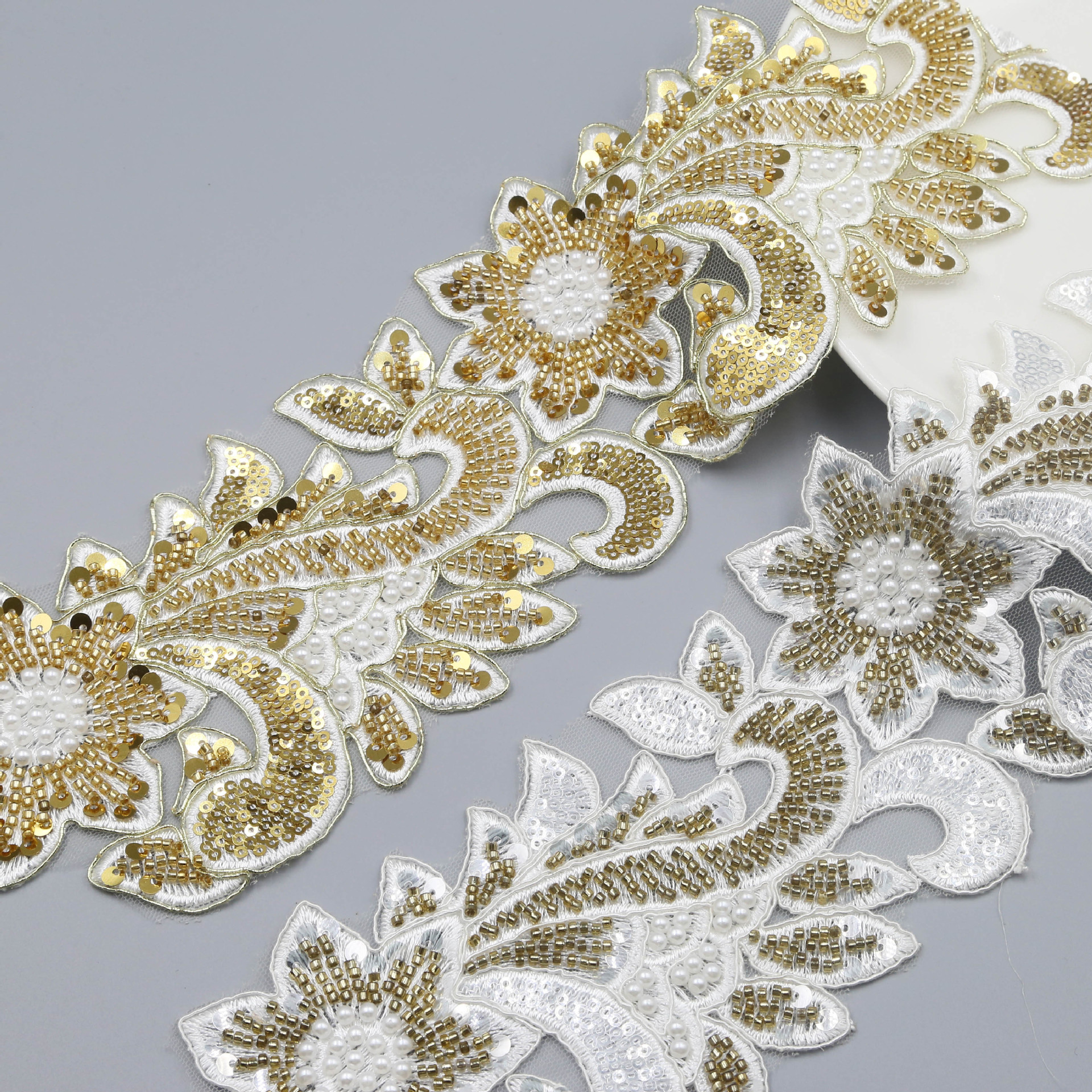 材质:高货带珍珠爆闪珠子亮片刺绣涤纶蕾丝花边