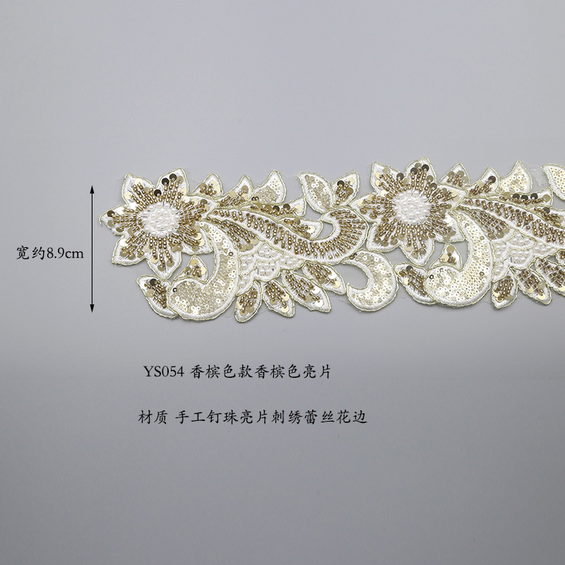 跨境优质手工钉珍珠爆闪珠子蕾丝花边服装婚纱DIY饰品箱包项链礼服发箍腰带服装辅料