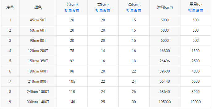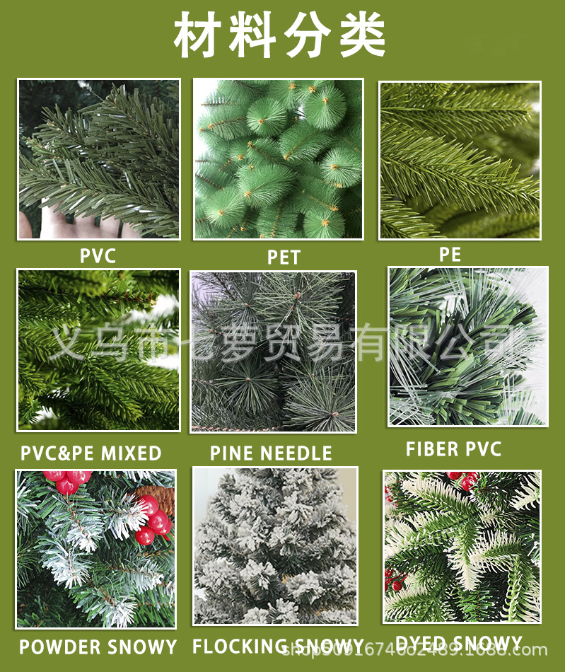 45cm 50T; 60cm 60T; 90cm 80T; 120cm 200T; 180cm 600T; 210cm 800T; 240cm 1000T; 300cm 1400T; Флокированная зашифрованная рождественская елка