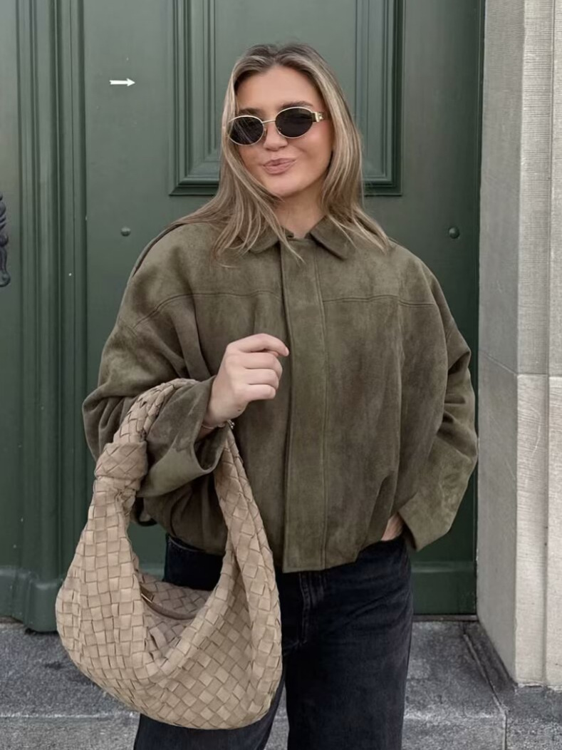 Женская куртка-бомбер из замши, европейско-американский стиль, осень 2025, трансграничная торговля, B88824