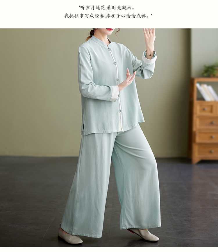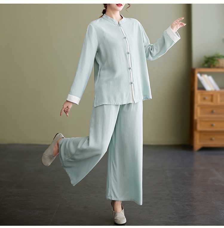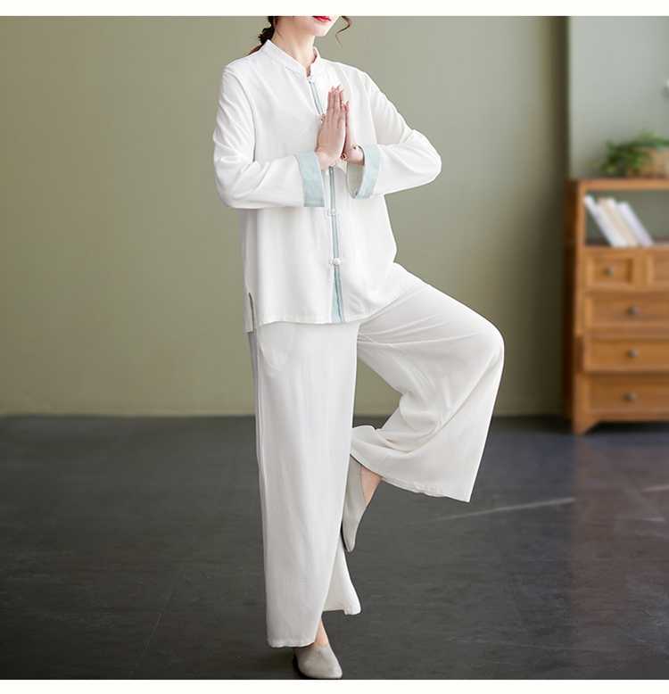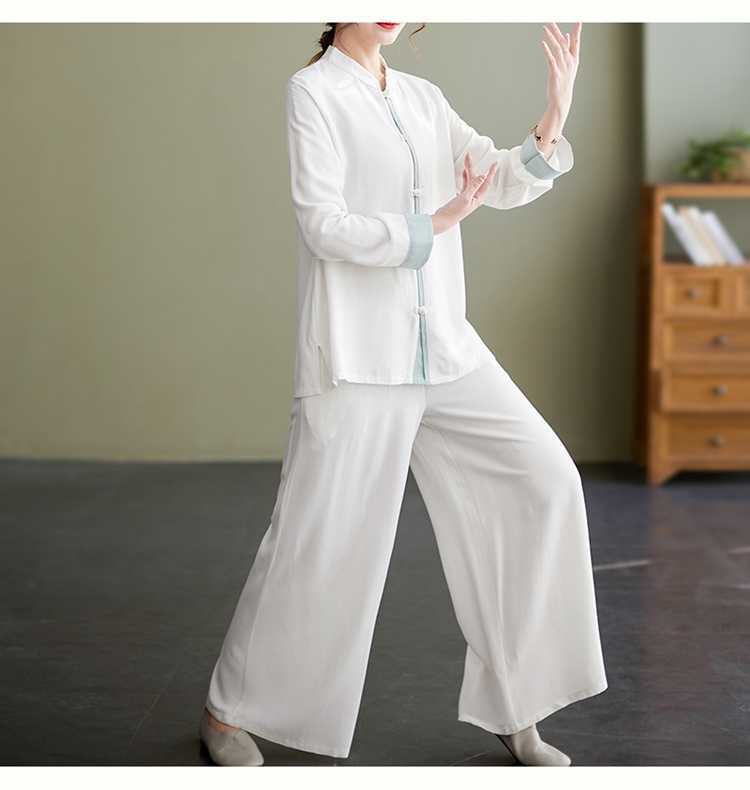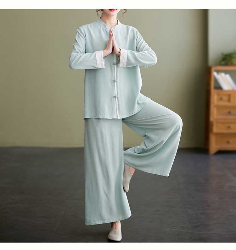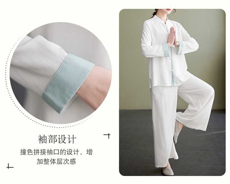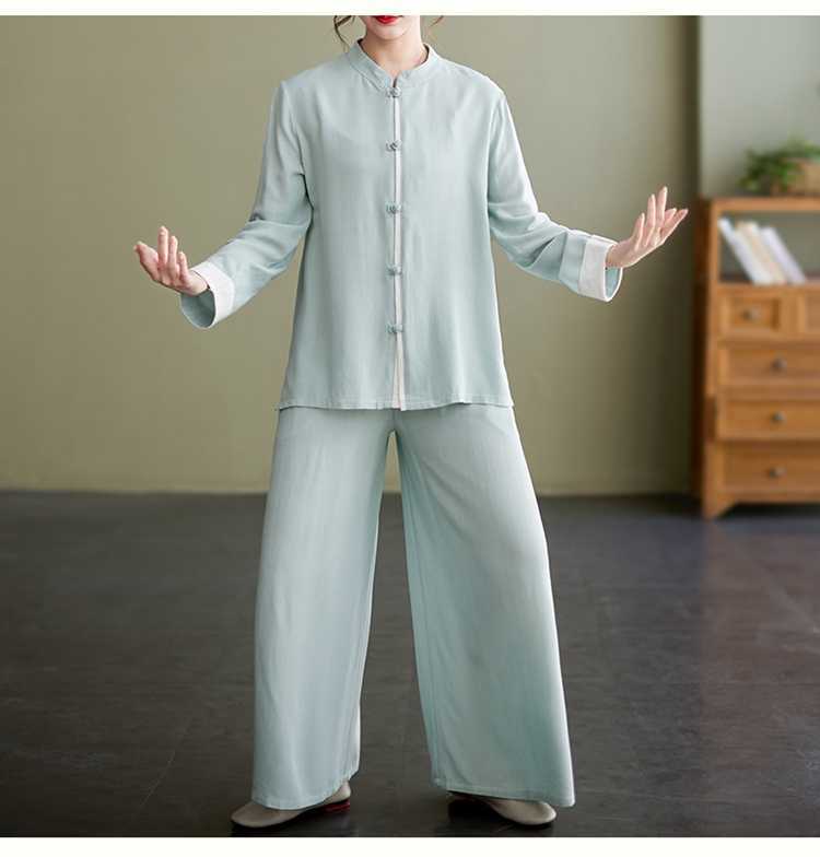 Настоящая фотография нового костюма Тай-Чи из хлопка и льна, свободного тренировочного костюма, комплекта из двух предметов для мирянина в стиле дзен.