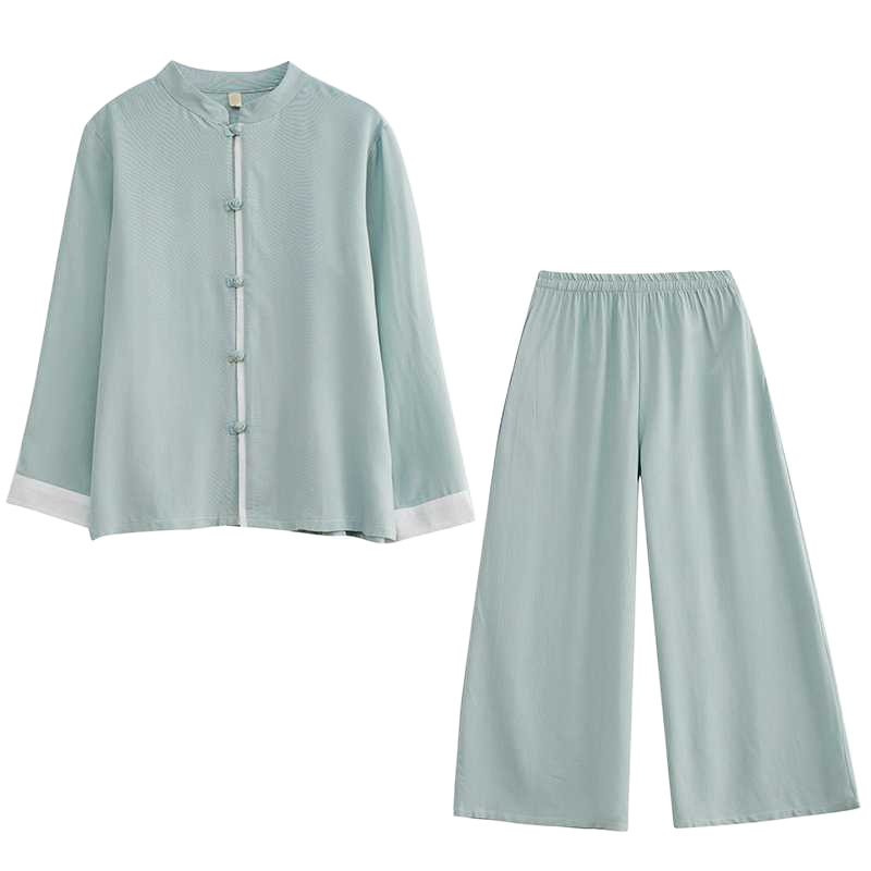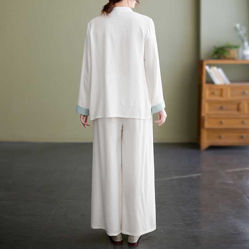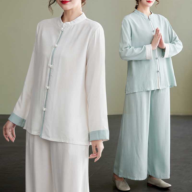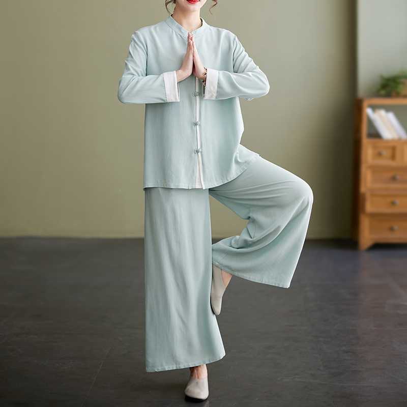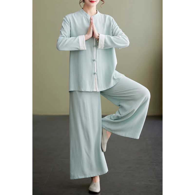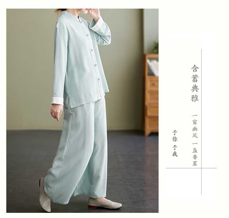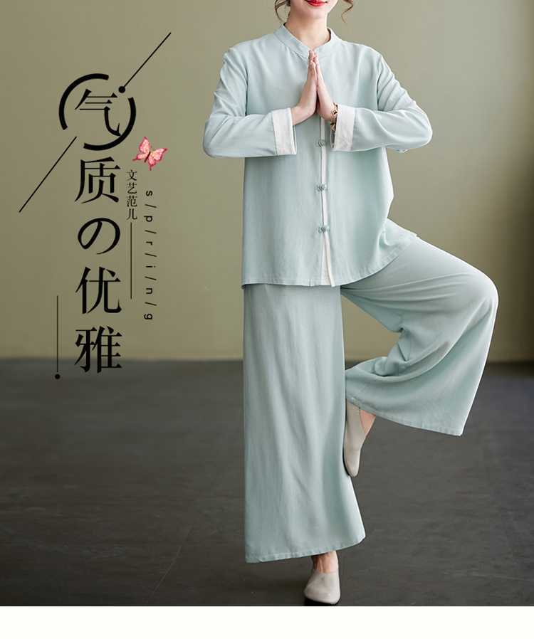 Настоящая фотография нового костюма Тай-Чи из хлопка и льна, свободного тренировочного костюма, комплекта из двух предметов для мирянина в стиле дзен.