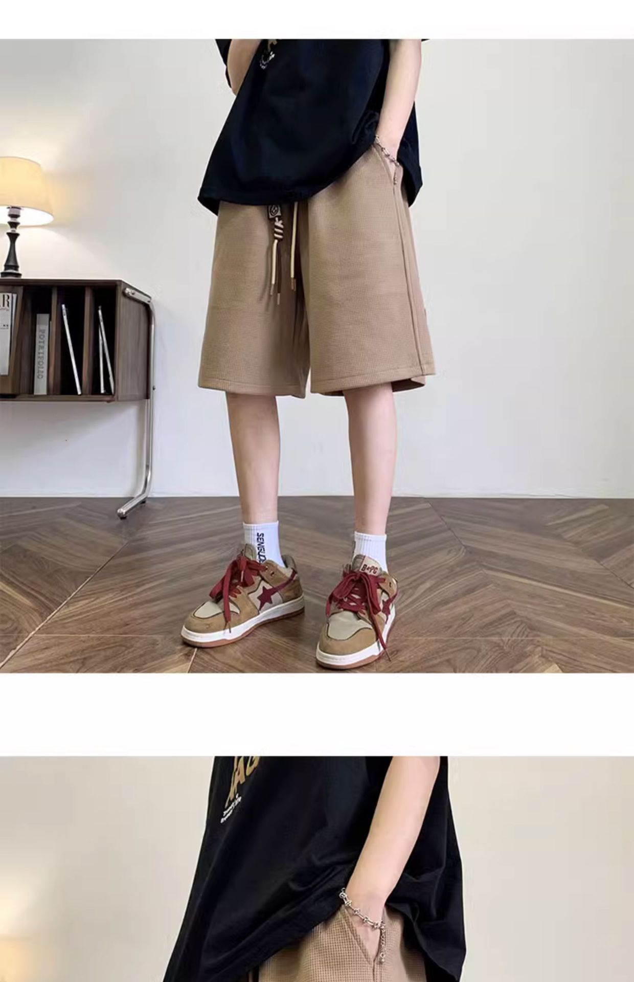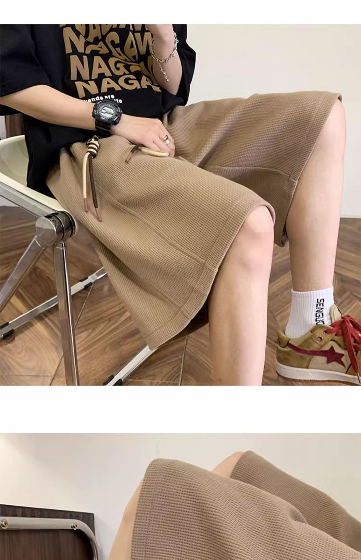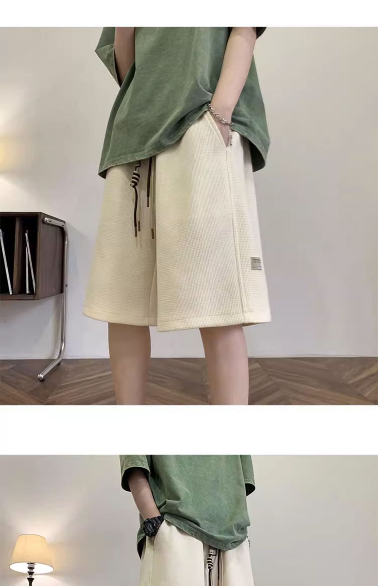 Вафли шорты для мужчин летом тонкий прилив свободный плюс размер брюки Американский спорт мальчики повседневные укороченные брюки