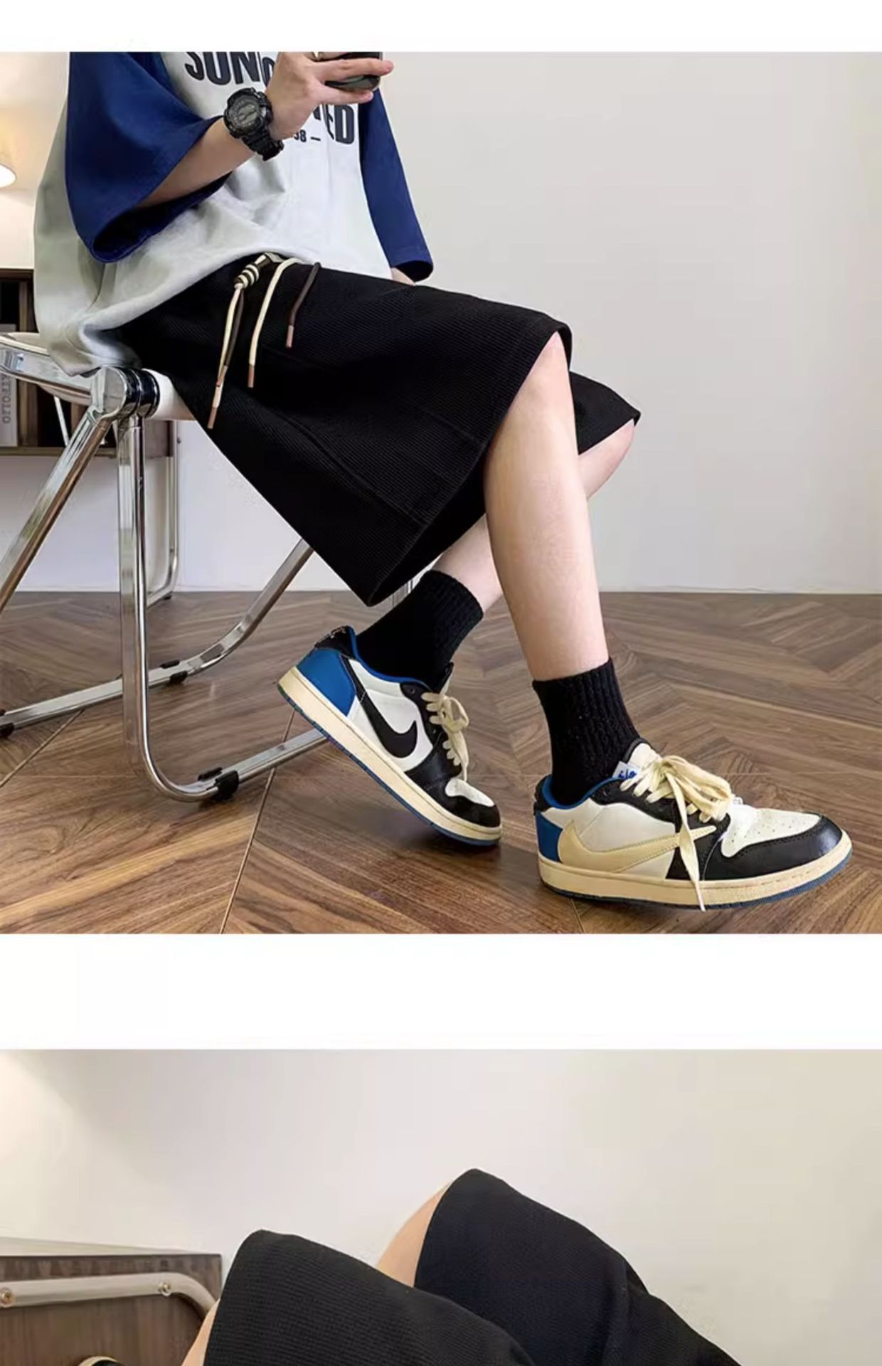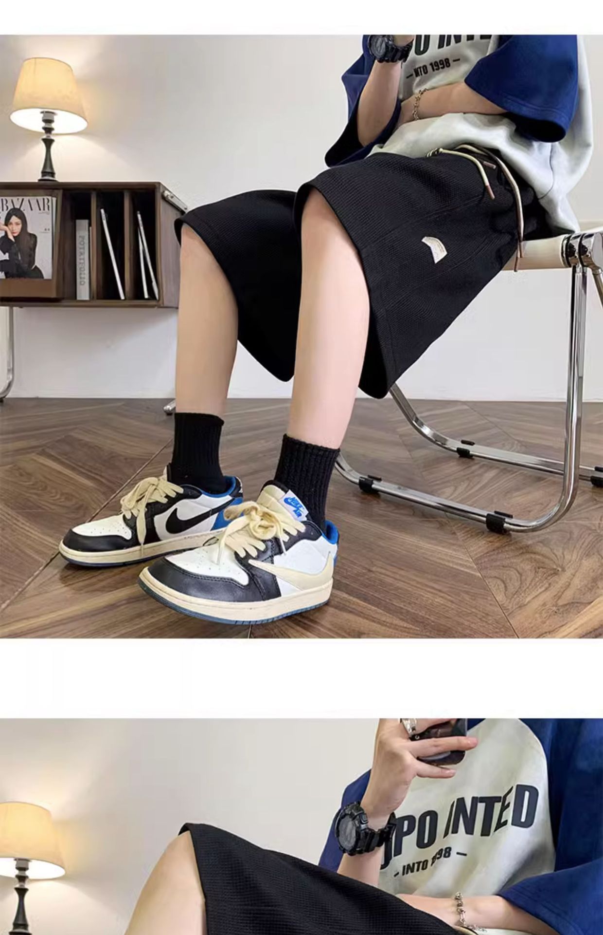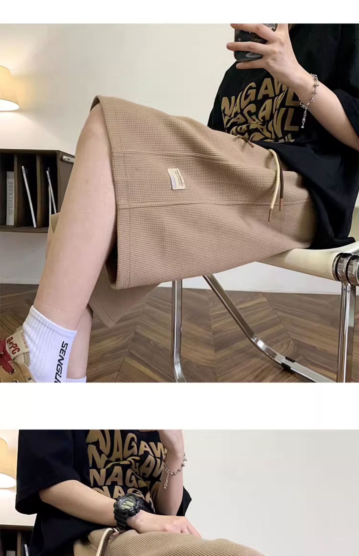 Вафли шорты для мужчин летом тонкий прилив свободный плюс размер брюки Американский спорт мальчики повседневные укороченные брюки