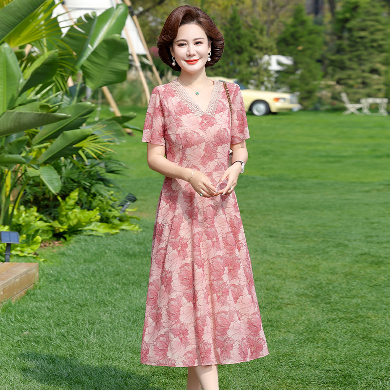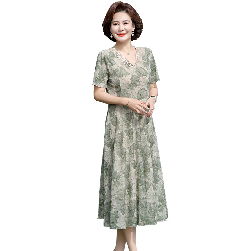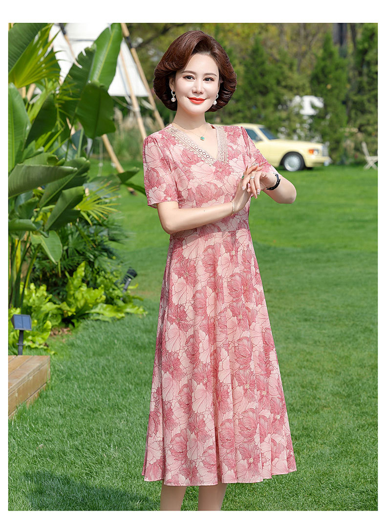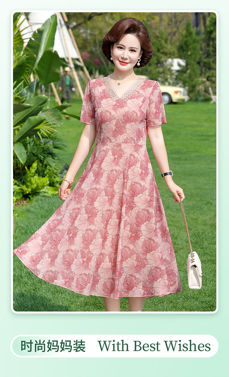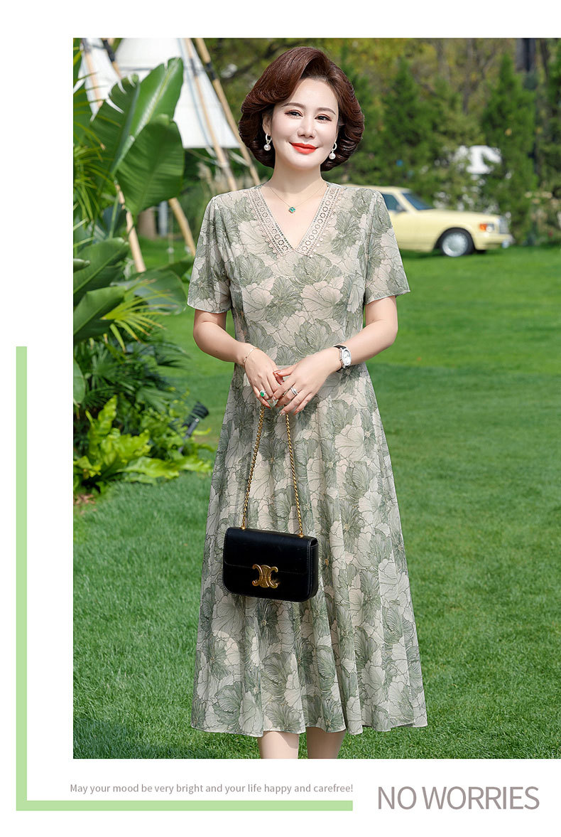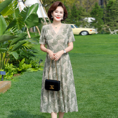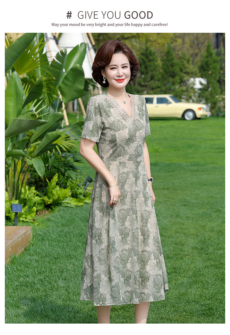 Летнее платье с короткими рукавами для мамы 2025 новое платье с тонким цветочным принтом