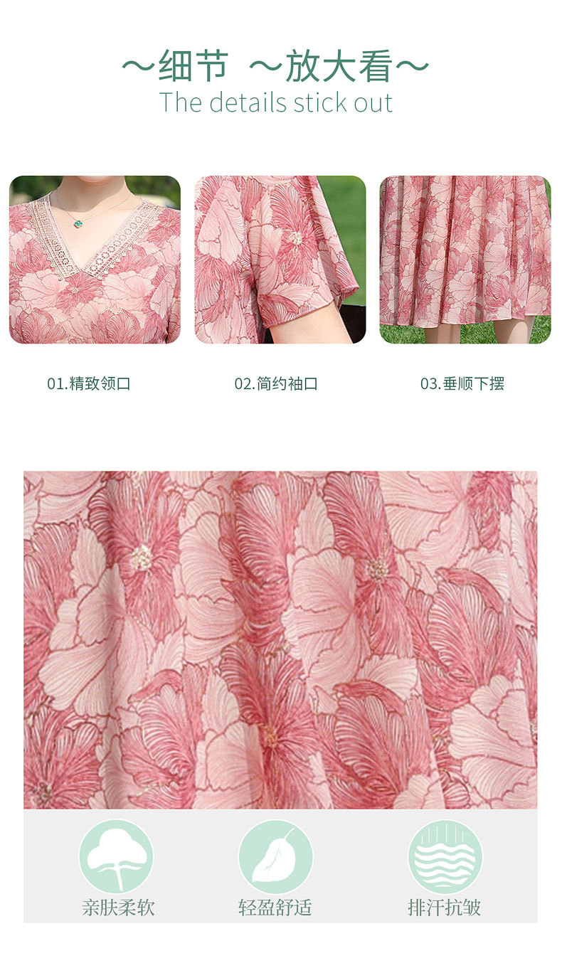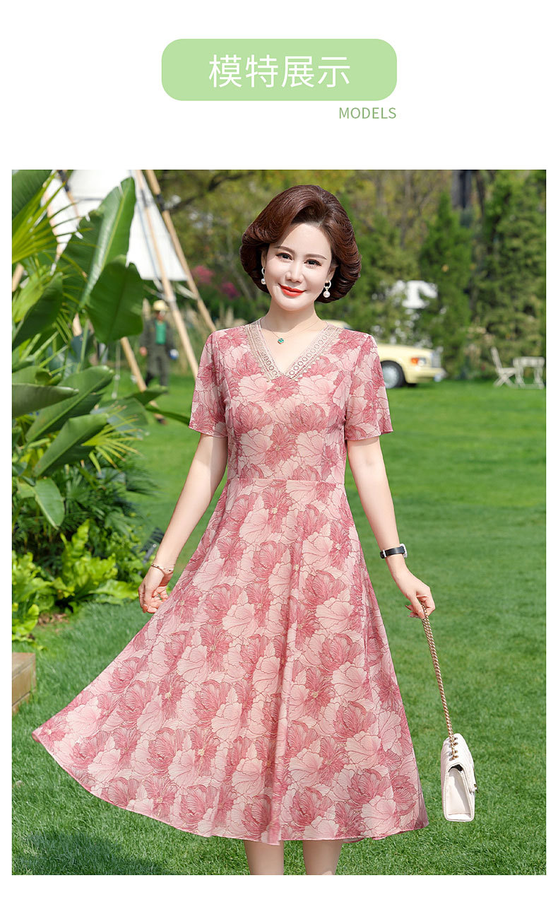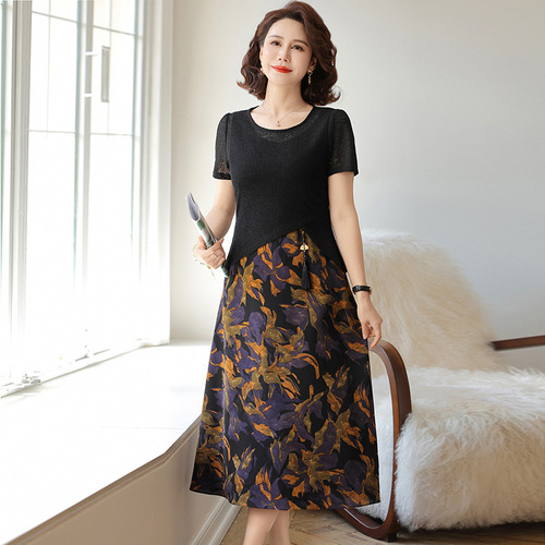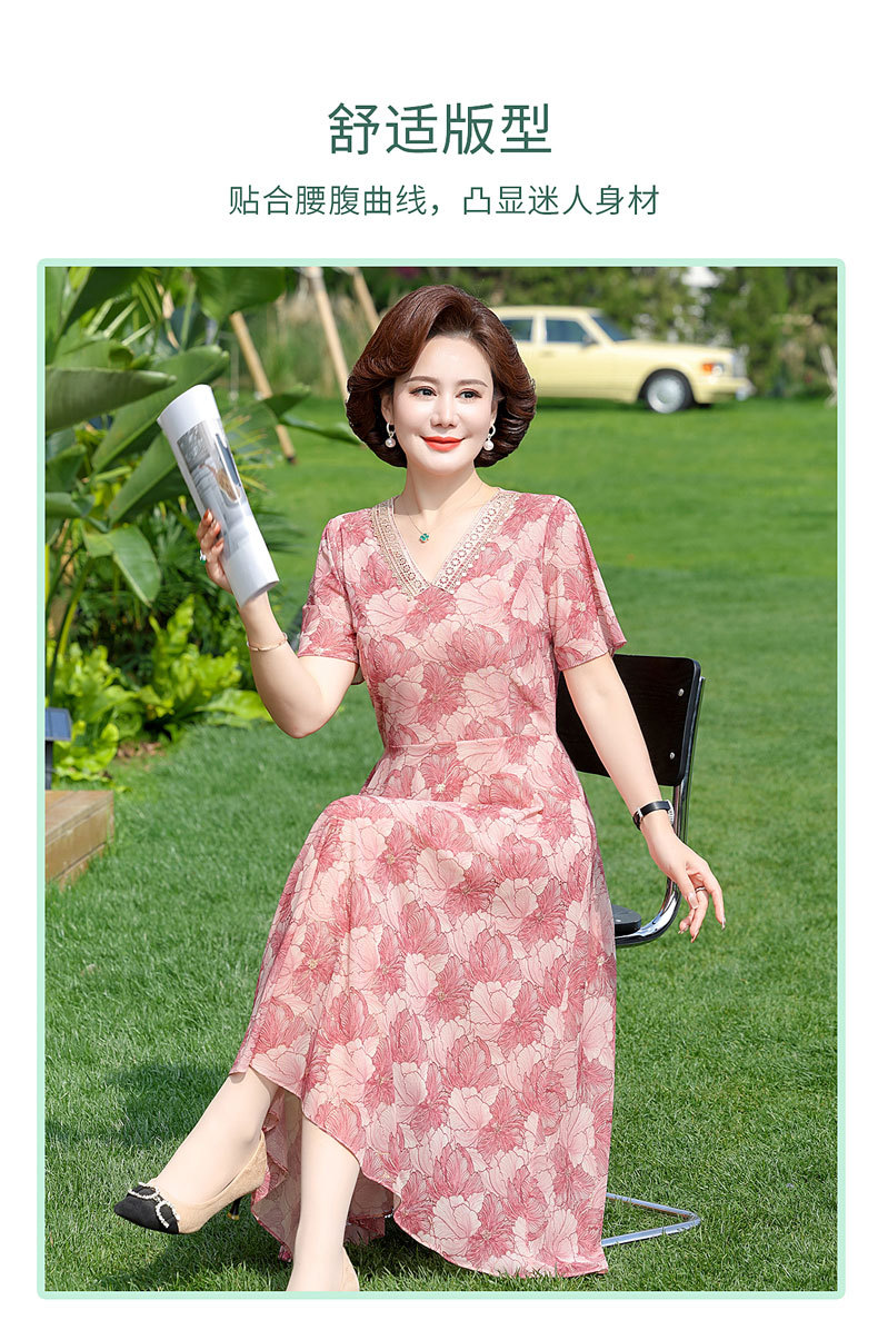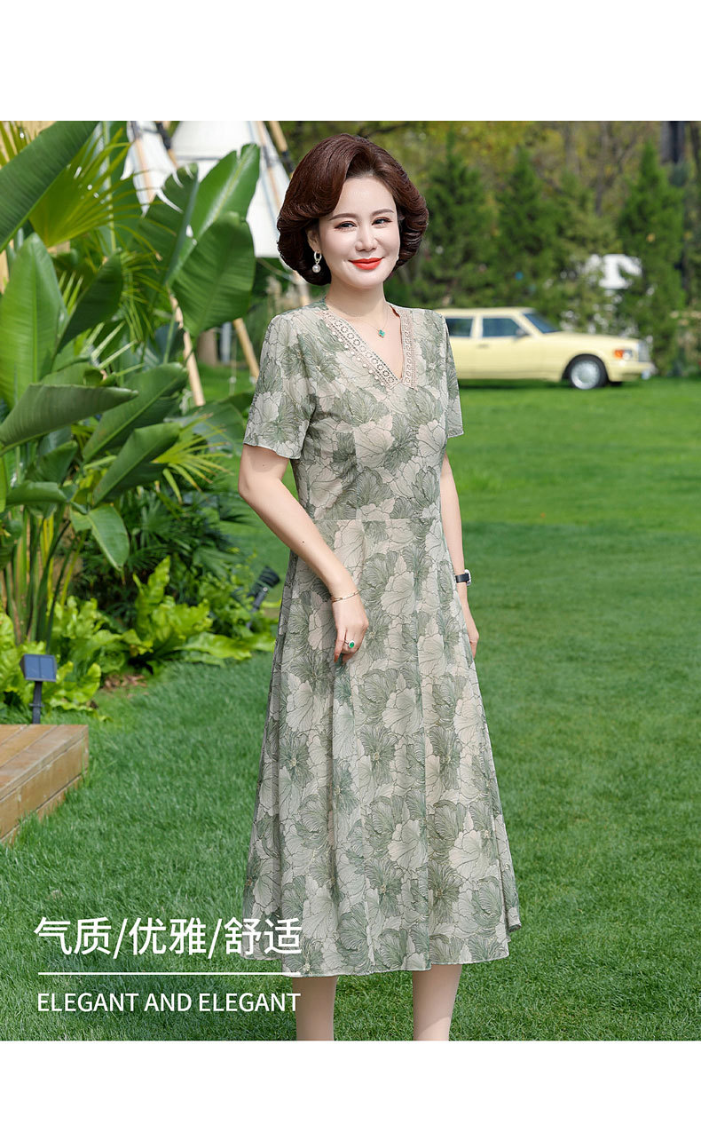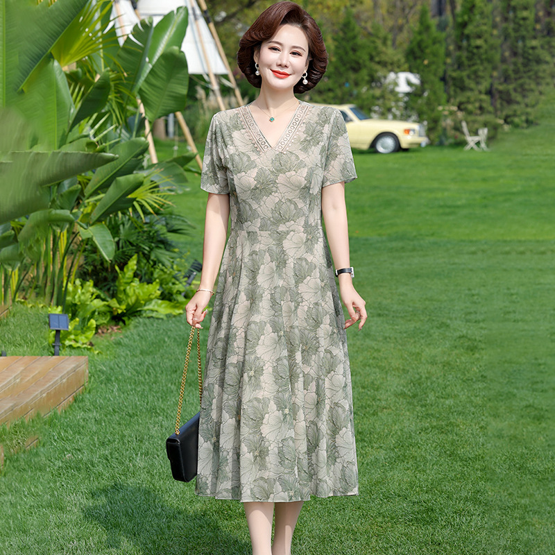 Летнее платье с короткими рукавами для мамы 2025 новое платье с тонким цветочным принтом