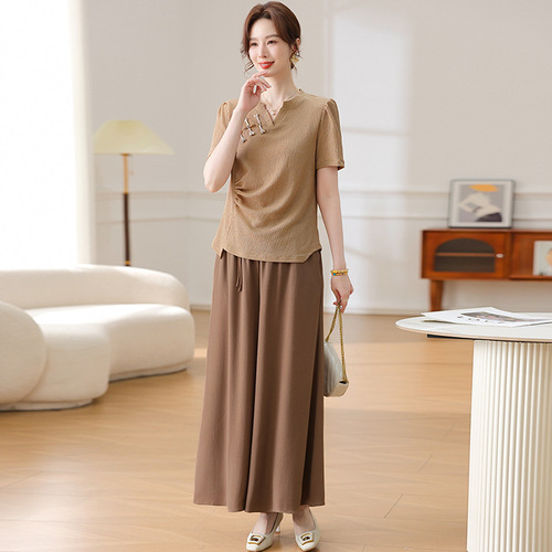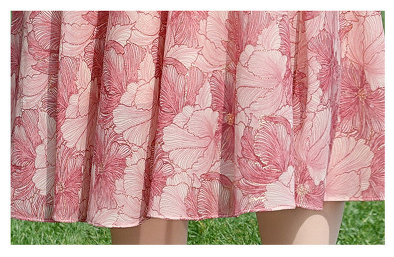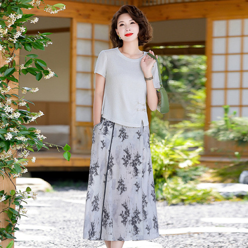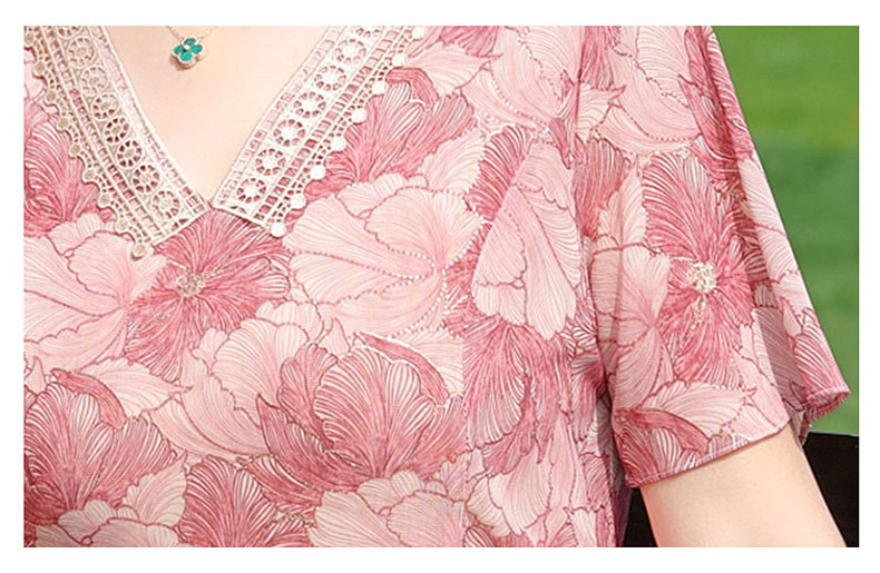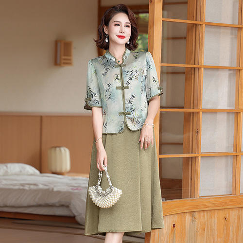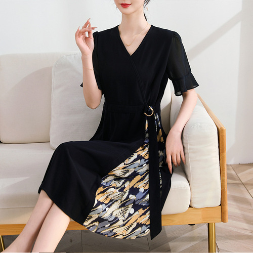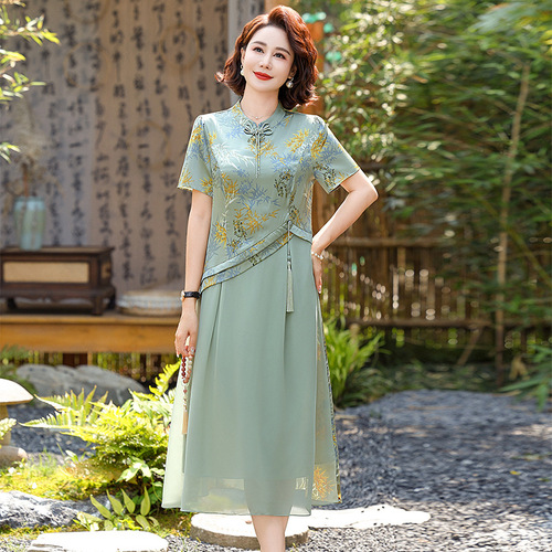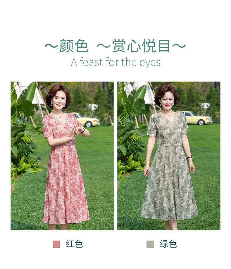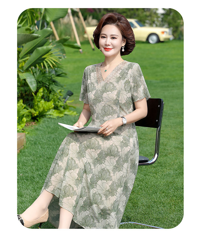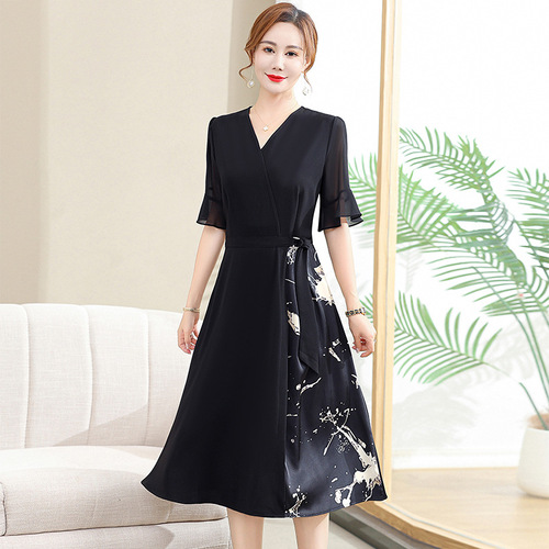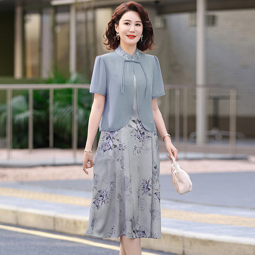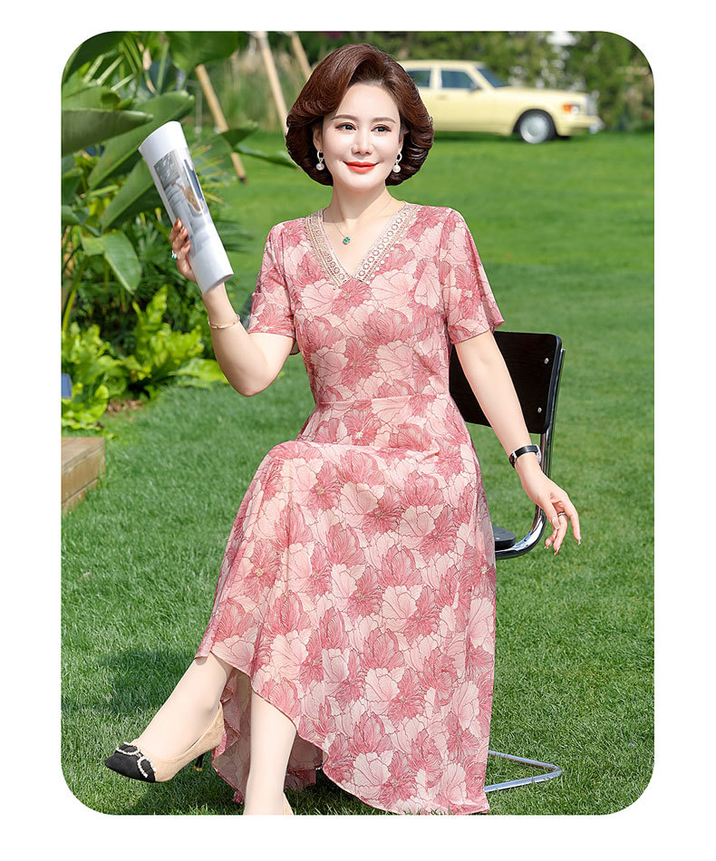 Летнее платье с короткими рукавами для мамы 2025 новое платье с тонким цветочным принтом