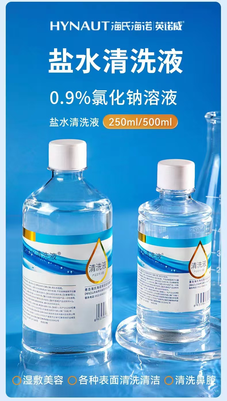 Физиологический раствор Haishi Hainuo 0,9% для очищения лица и носа, медицинский натрий хлорид в бутылках.