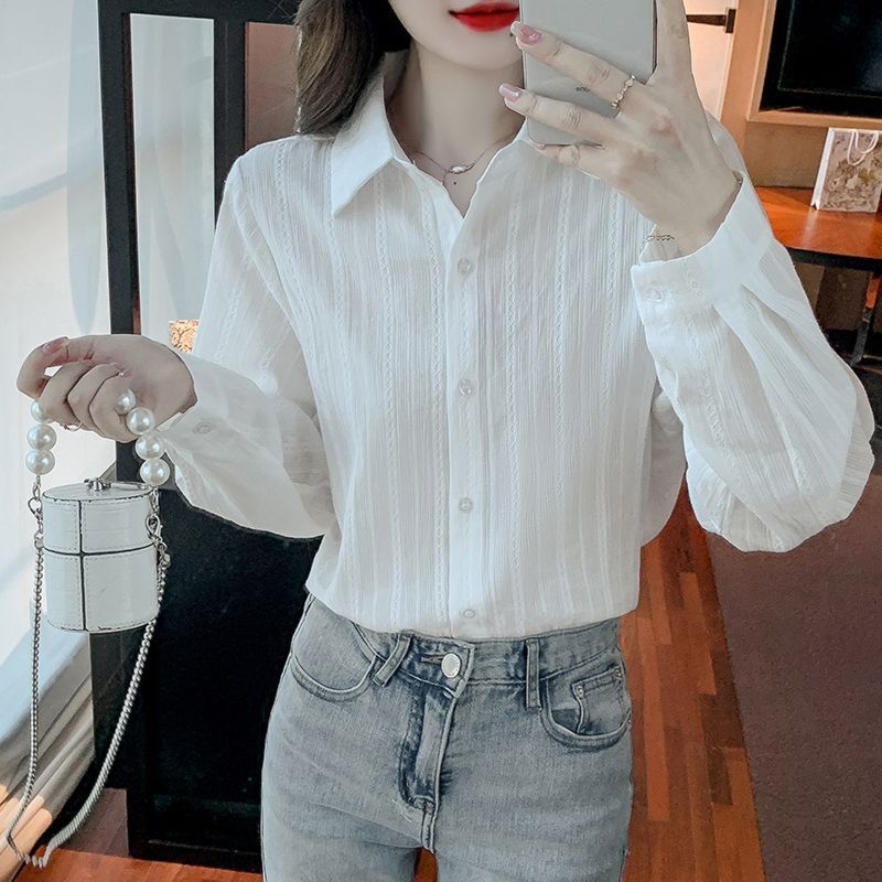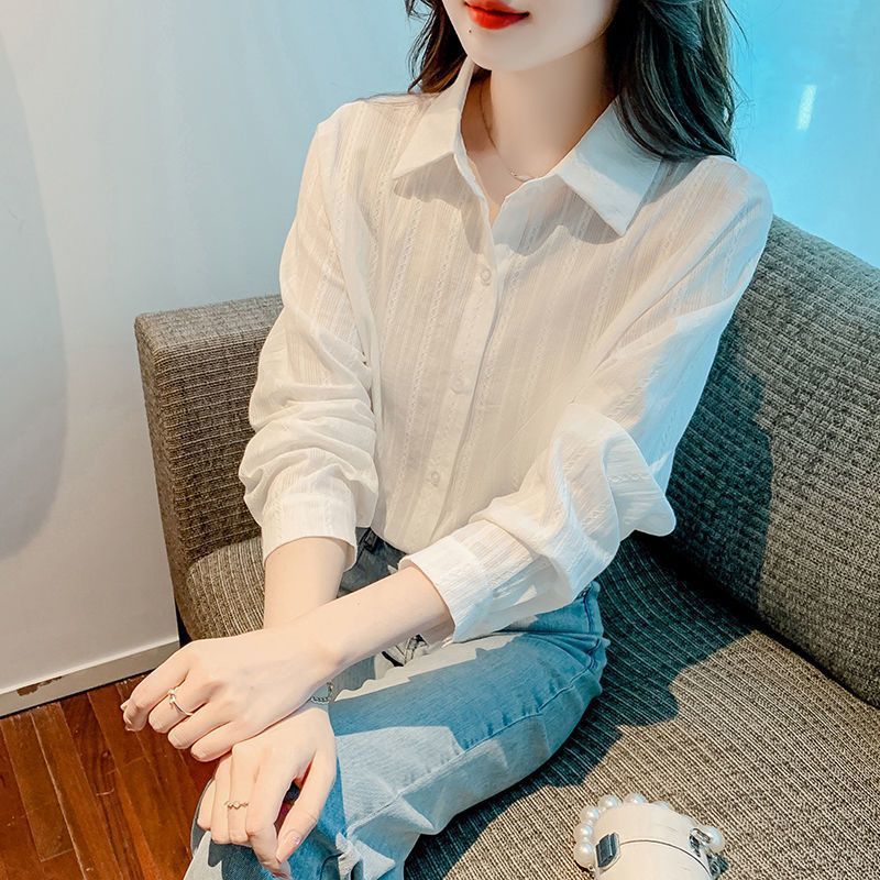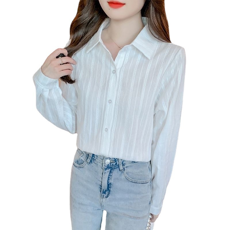 Французская поло-воротник с длинным рукавом белая рубашка женская весна 2024 новый продвинутый темперамент рубашка свободная тонкая топ