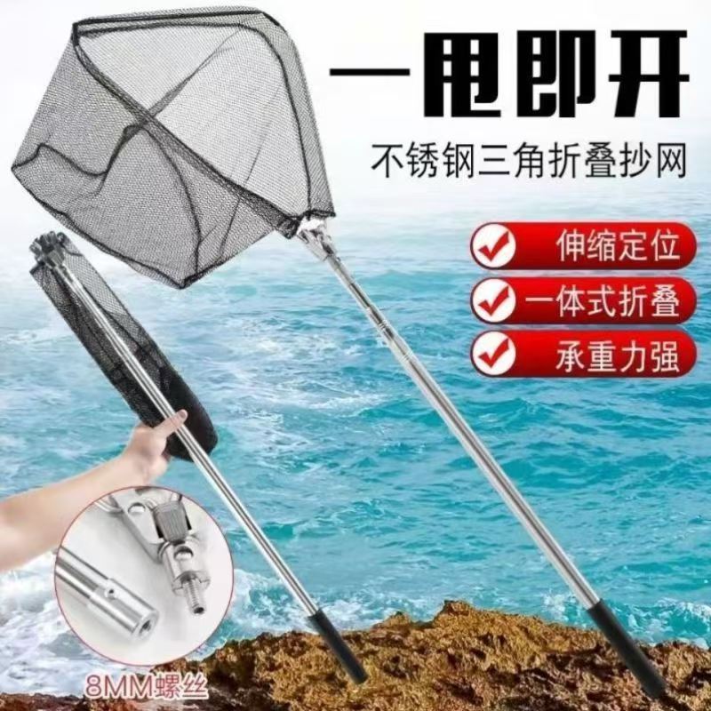 Скопированная сетка телескопическая сетка полный набор рыболовных сетей, черные ямы, складные треугольники, рыболовные рыболовные сети, рыболовные сети из нержавеющей стали