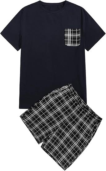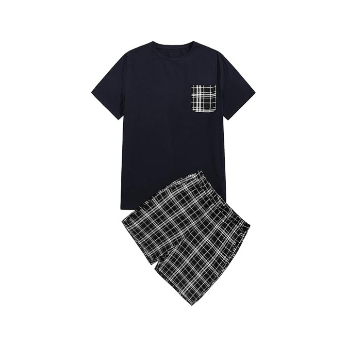 Европейский и американский мужской костюм с короткими рукавами в клетку, повседневная пижама большого размера, спортивная верхняя одежда, костюм домашней одежды
