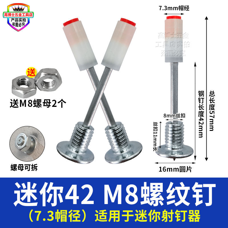 Оптовая продажа мини-резьбовой один гвоздь с винтовой гвоздей M8 42 длинный гвоздь пистолет для ногтей 7.3mm