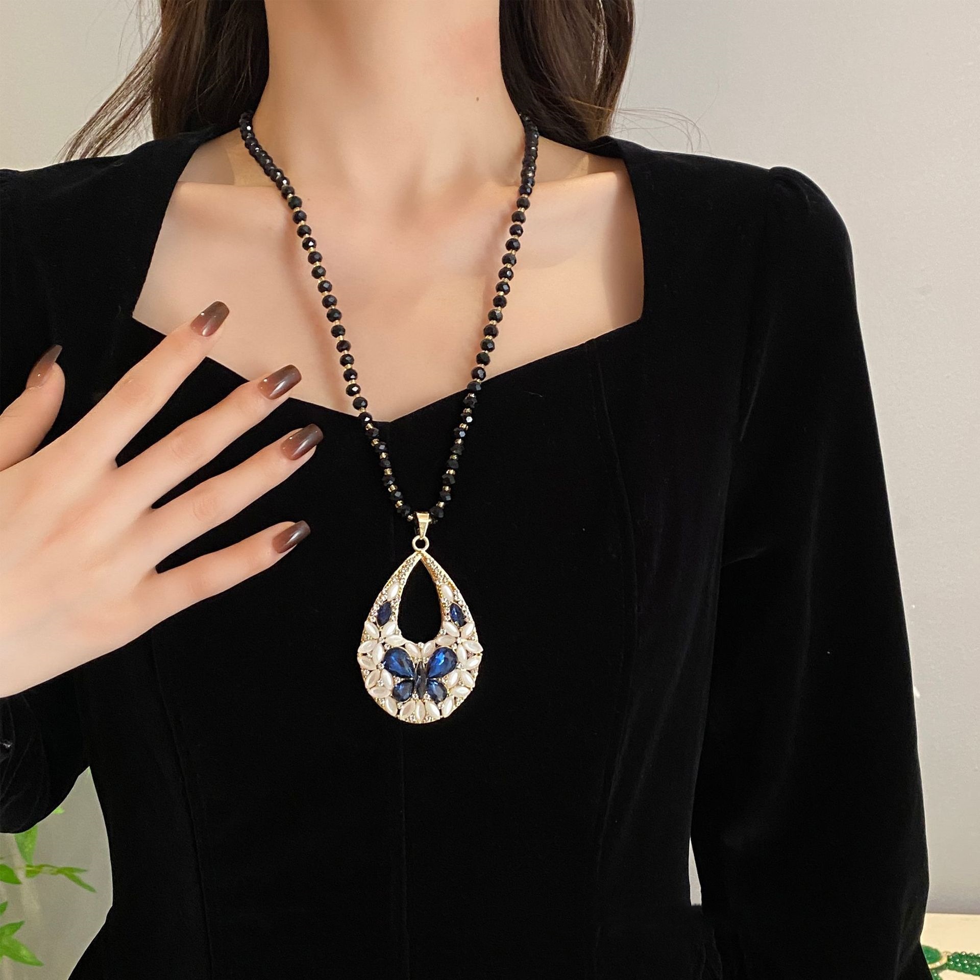 Новый китайский стиль ретро легкий и роскошный зеленый ожерелье из бисера женский осень-зима длинная цепочка свитера универсальный аксессуар для одежды подвеска женский