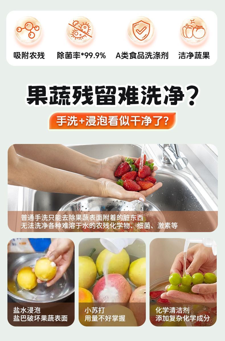 Средство для очистки фруктов и овощей, средство для очистки яичной скорлупы, средство для удаления следов пестицидов для беременных и младенцев, средство для очистки фруктов, порошок для очистки фруктов и овощей