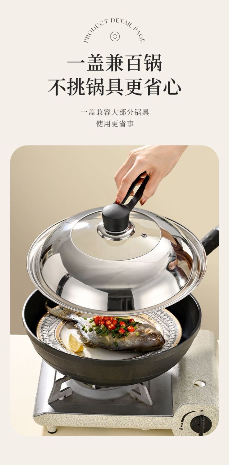 Крышка кастрюли из нержавеющей стали крышка домашнего вок крышка взрывозащищенного стекла комбинированная крышка универсальная кастрюля