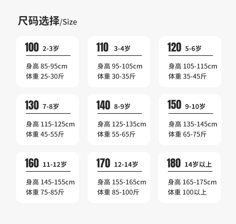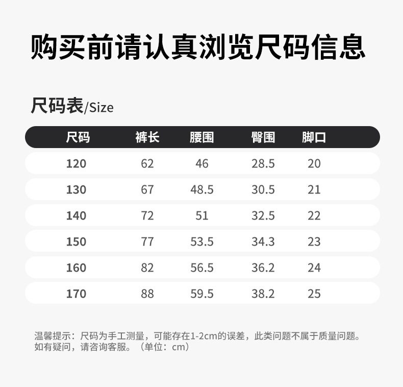 120cm; 130cm; 140cm; 150cm; 160cm; 170cm