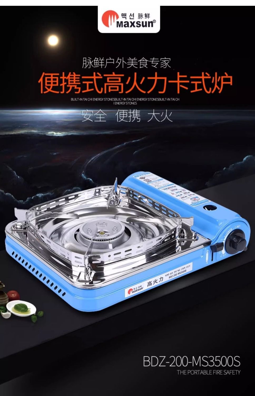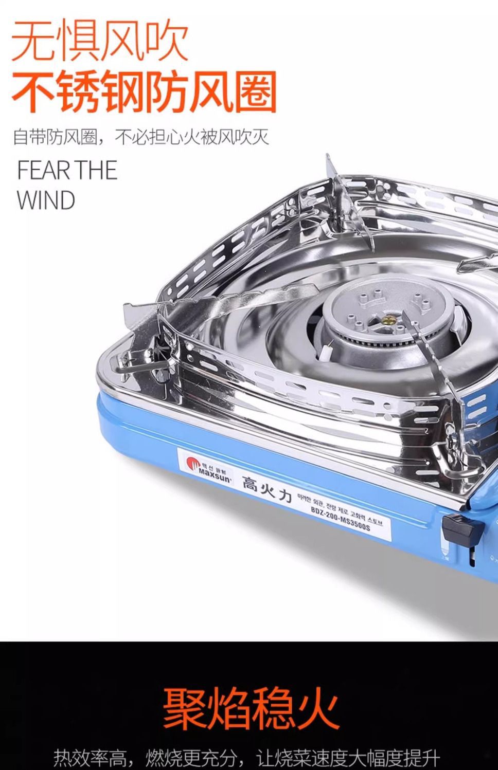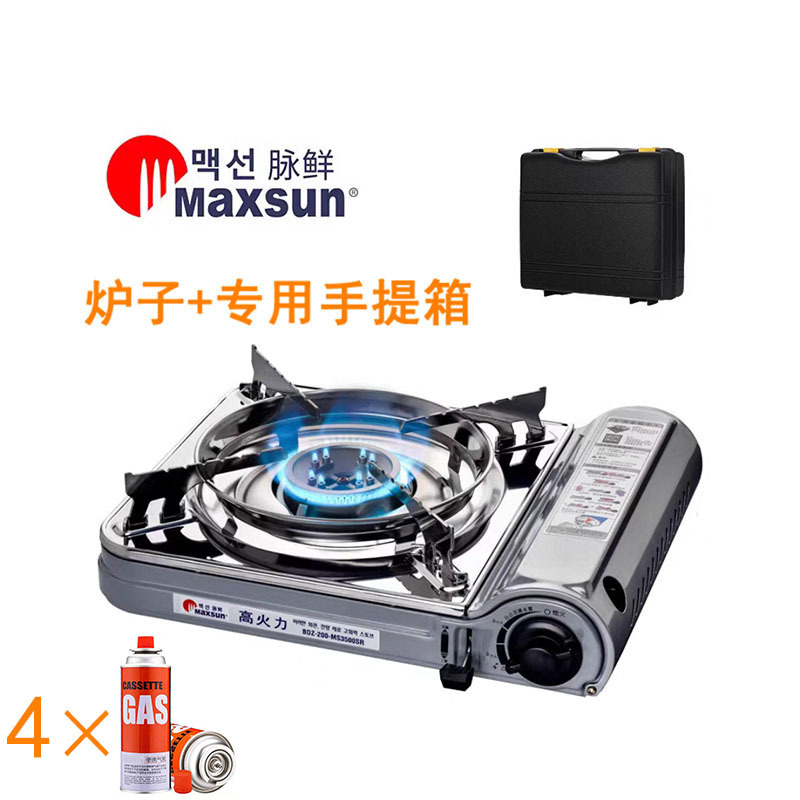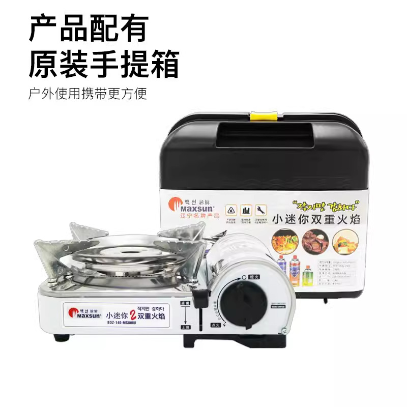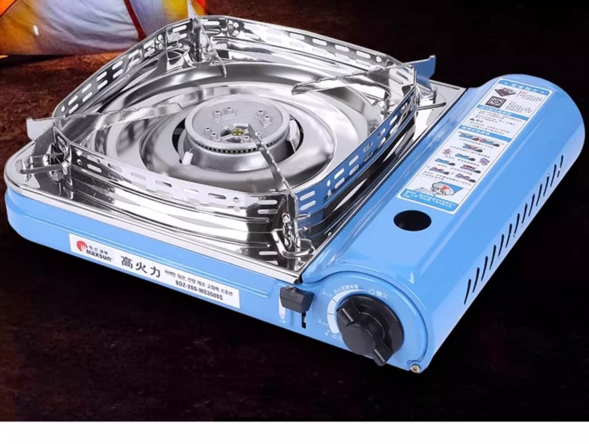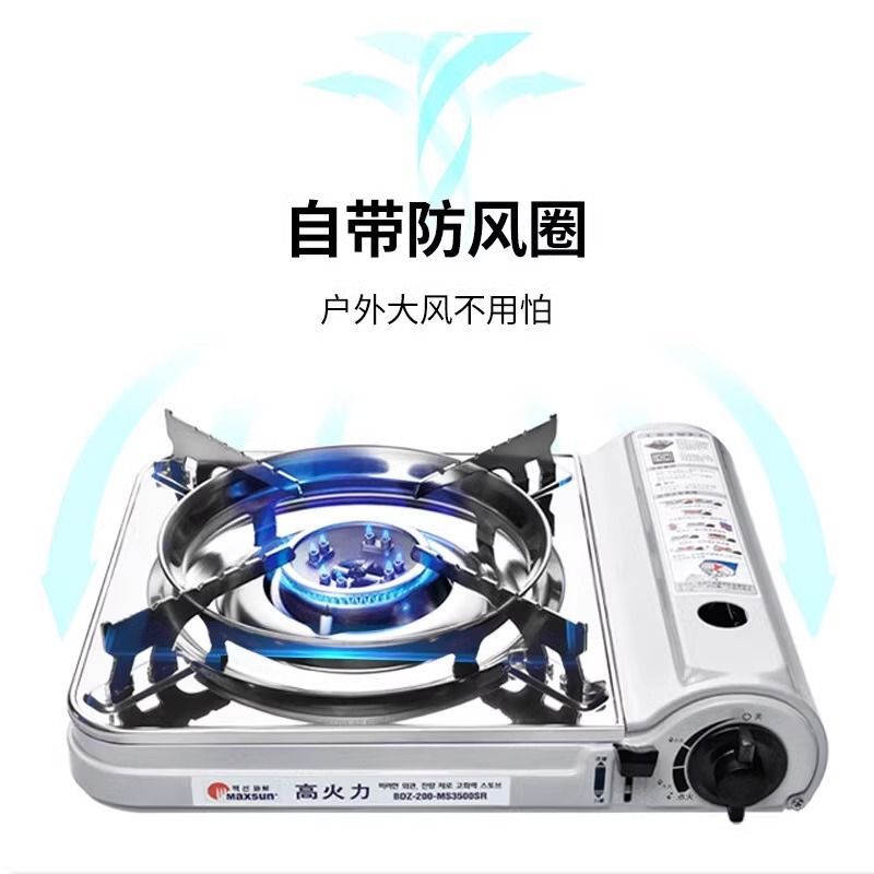 Портативная газовая плита Maixian MS-3500SR для приготовления пищи на открытом воздухе, с функцией барбекю и ветрозащитой.