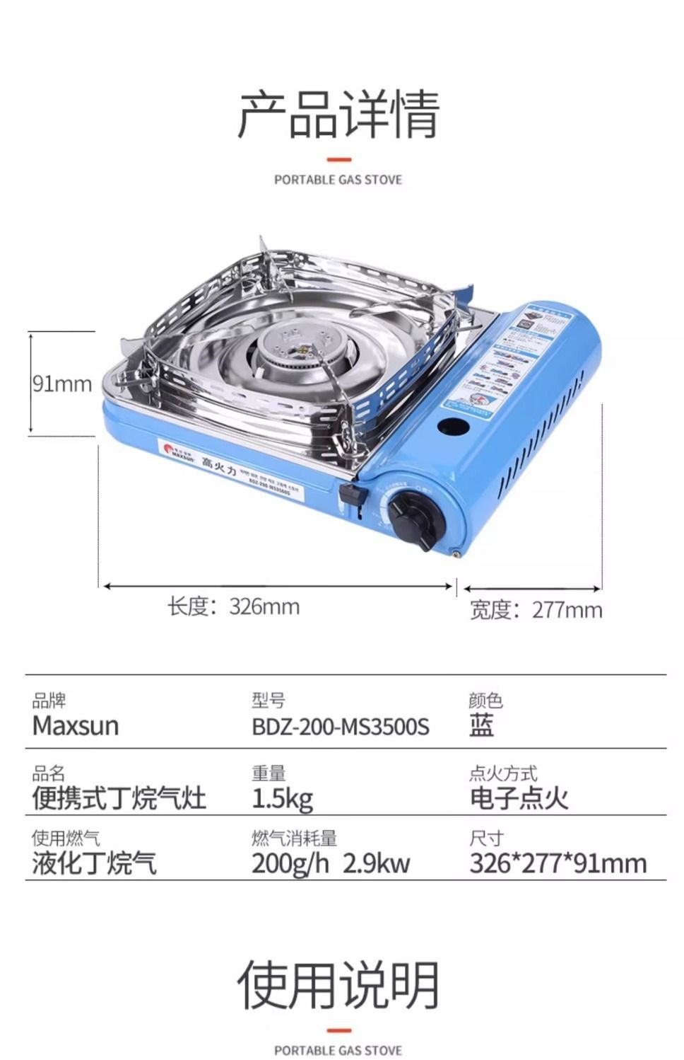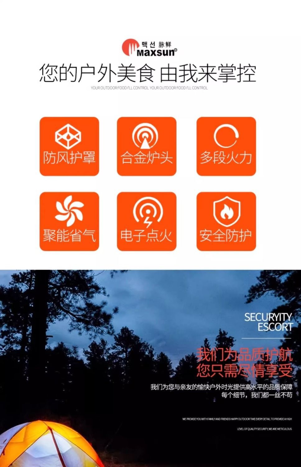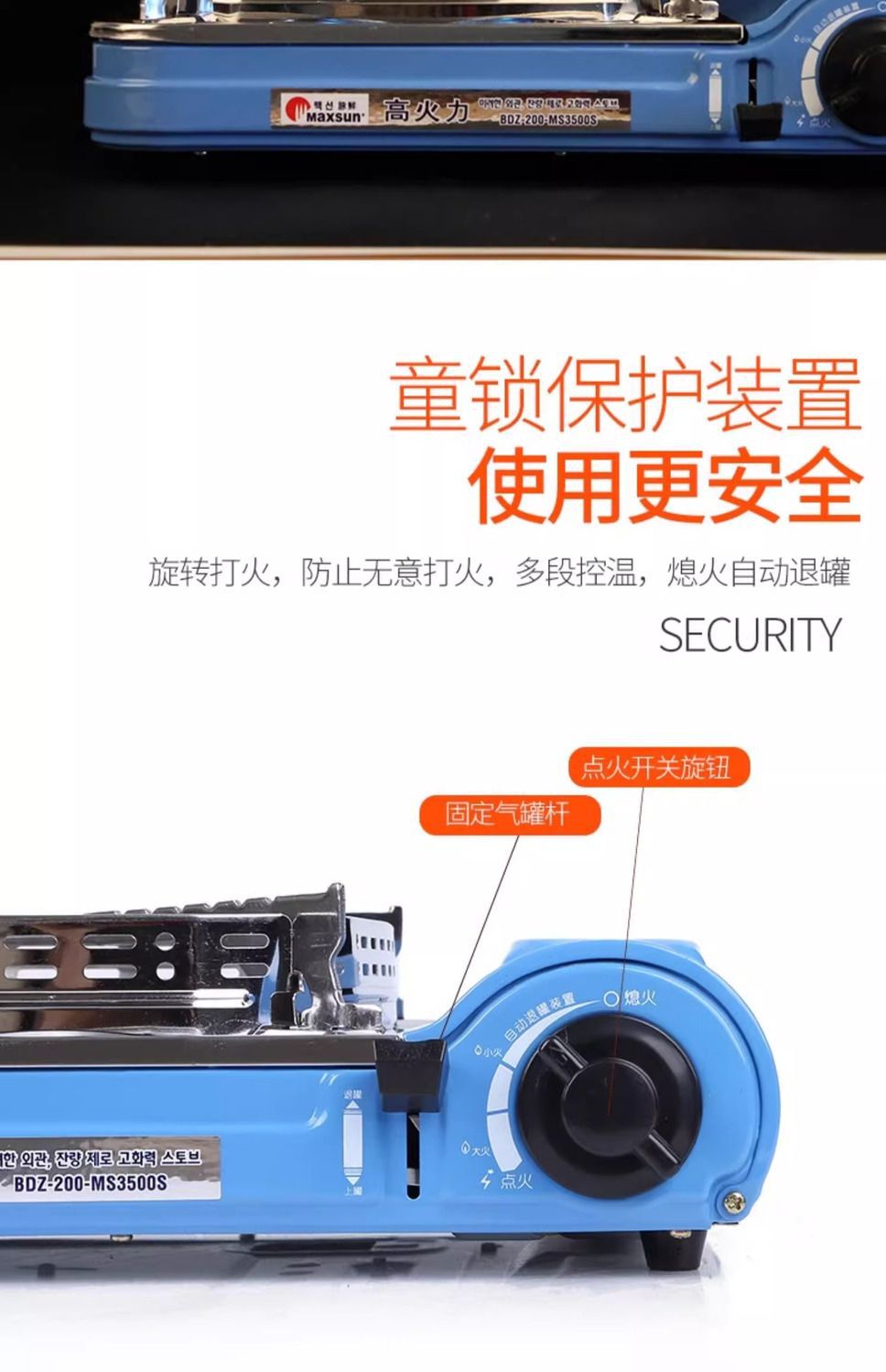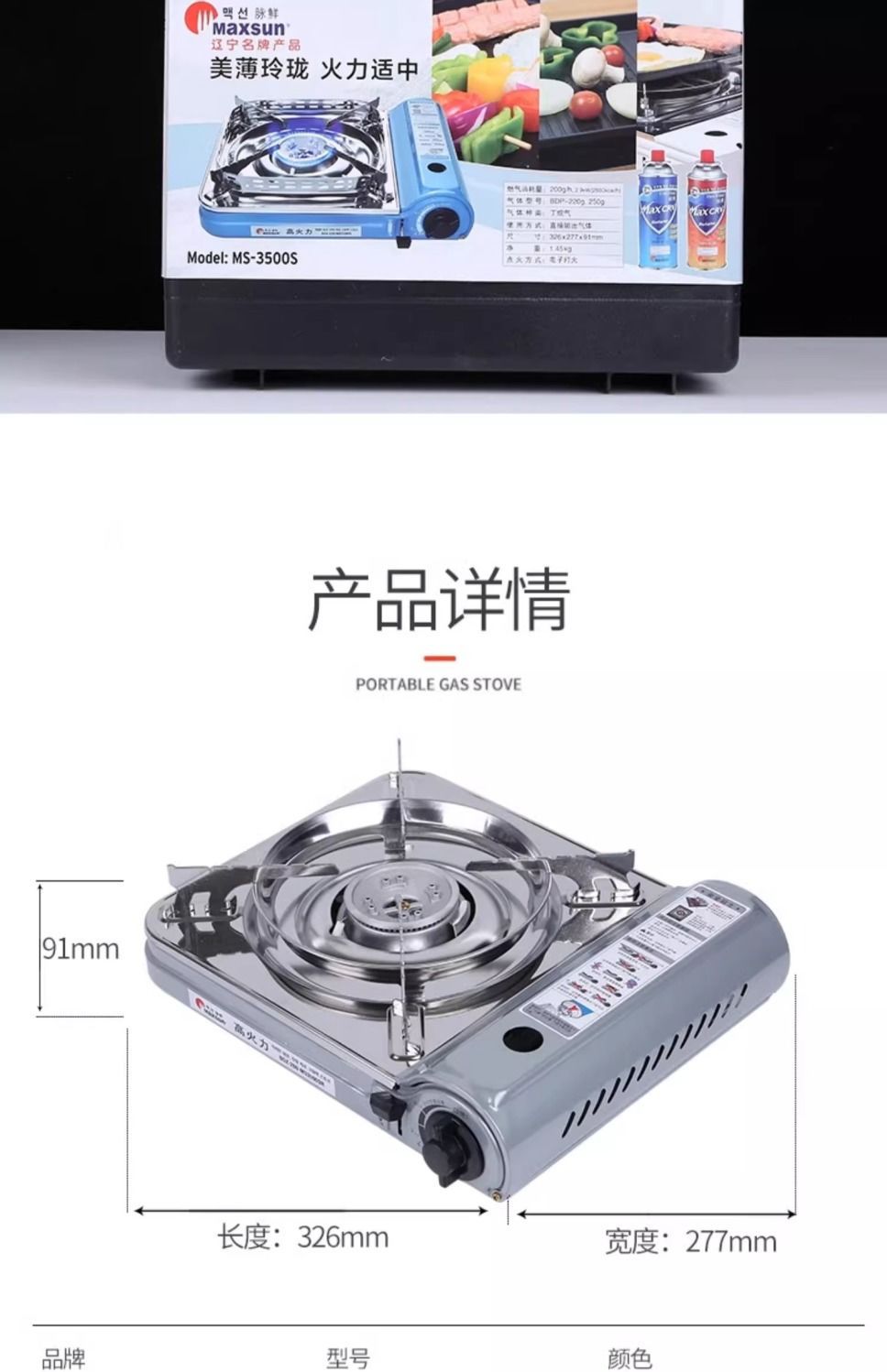 Портативная газовая плита Maixian MS-3500SR для приготовления пищи на открытом воздухе, с функцией барбекю и ветрозащитой.