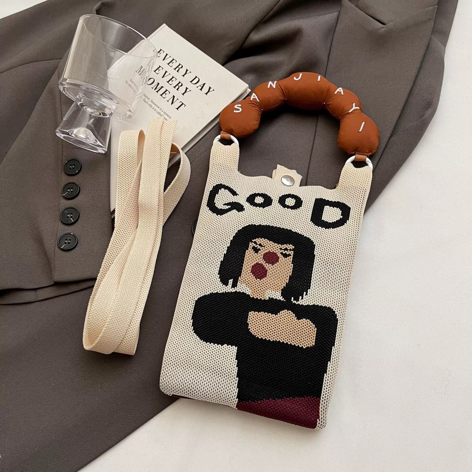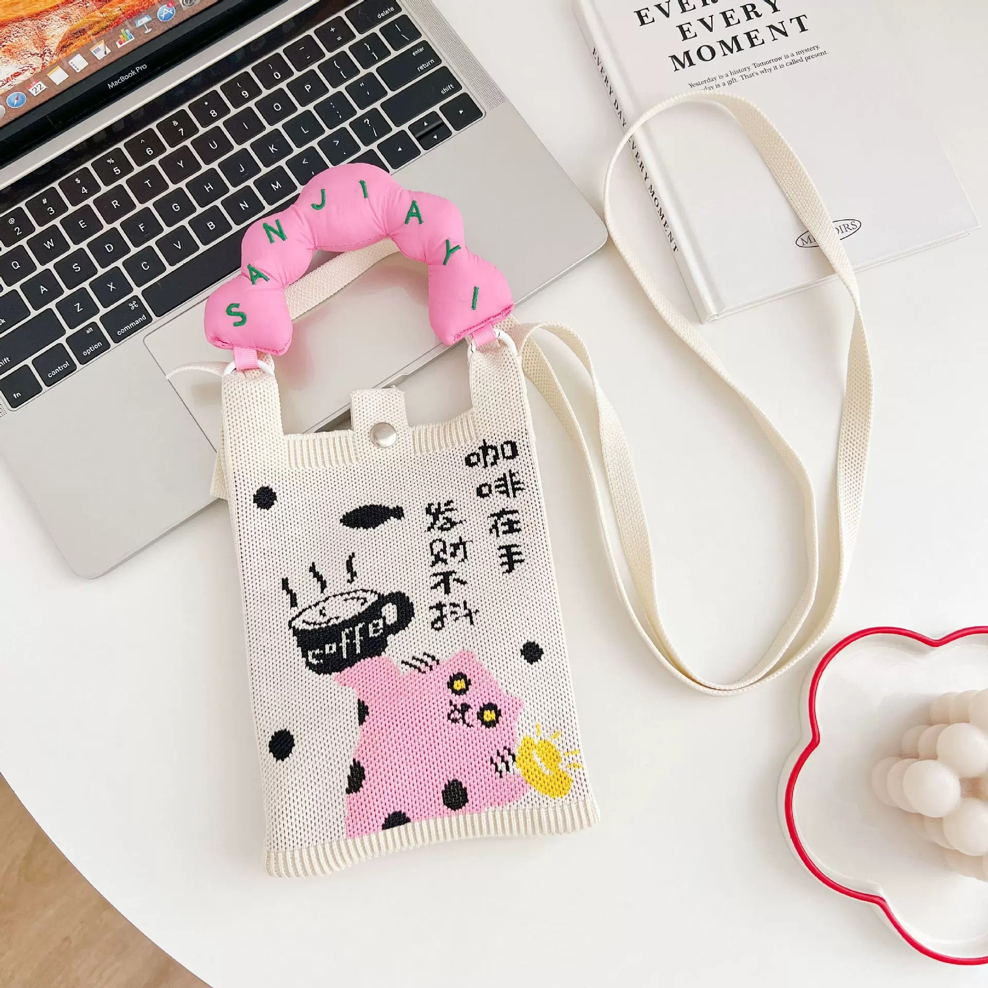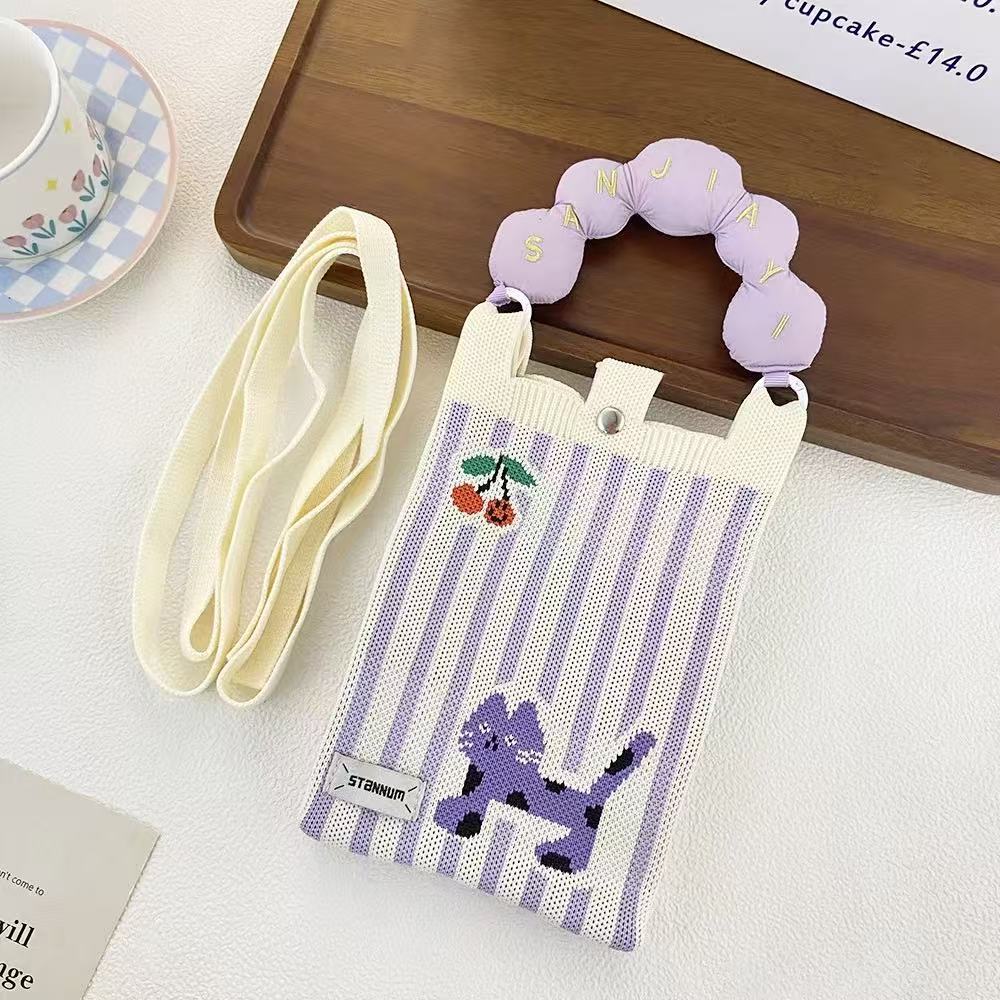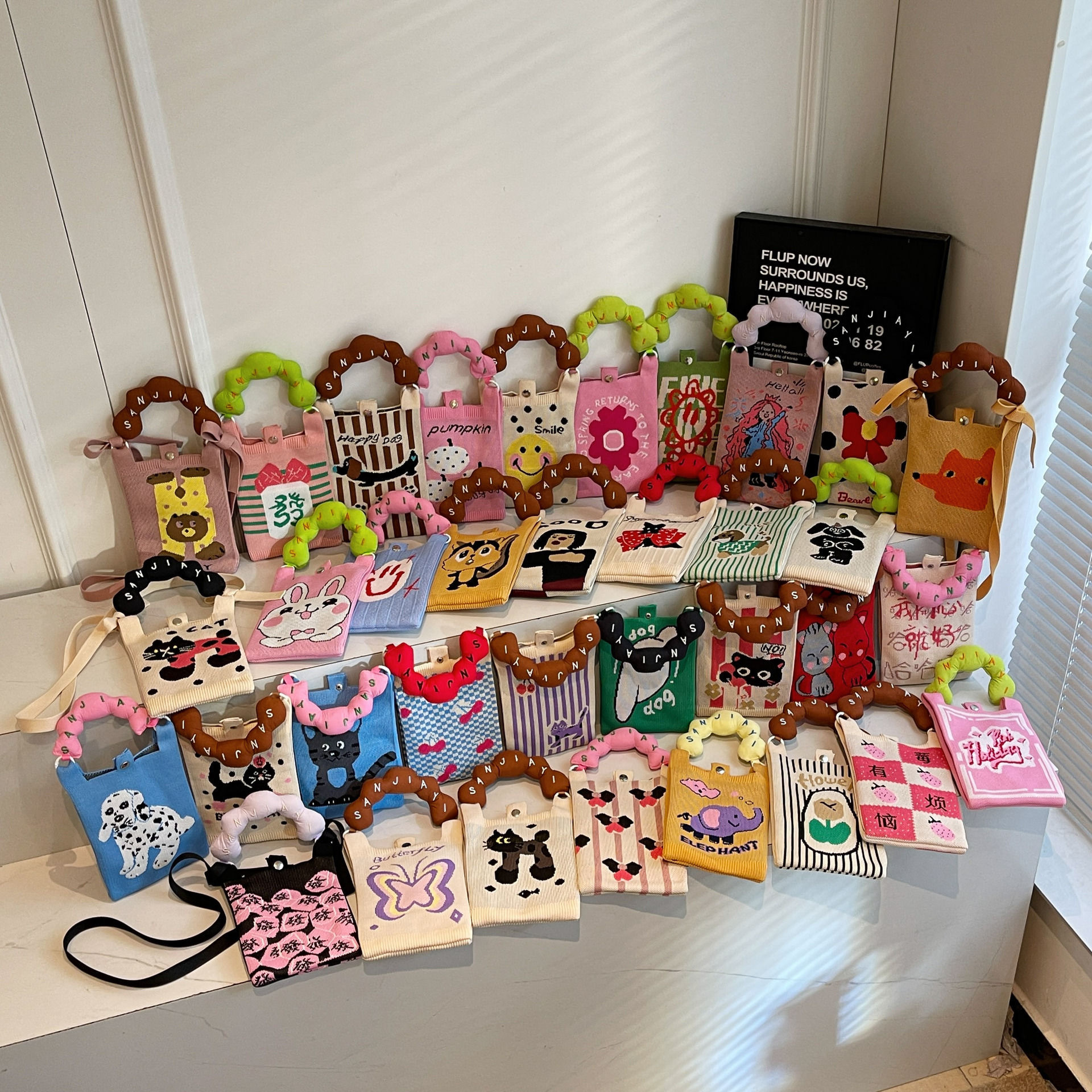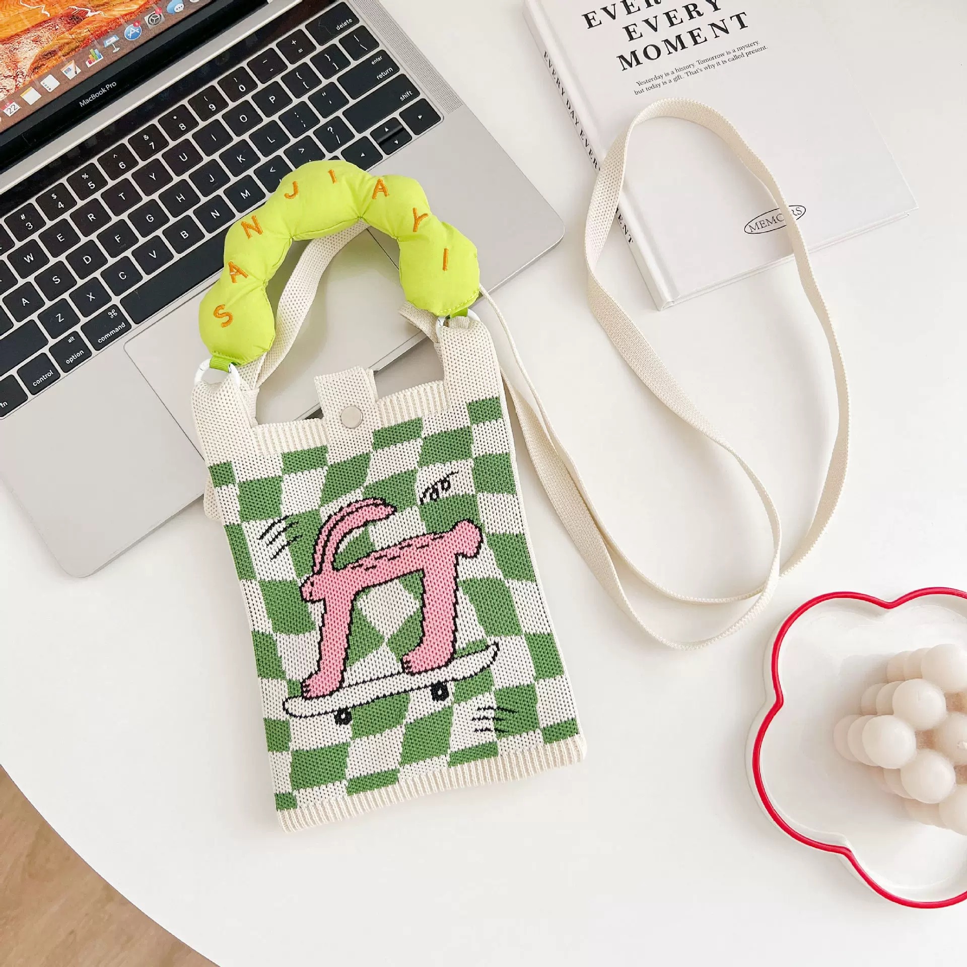 Корейская версия нишевых дизайн милый мультфильм мини вязаный мобильный телефон сумка дикая компактная портативная коммутирующаяся маленькая квадратная сумка
