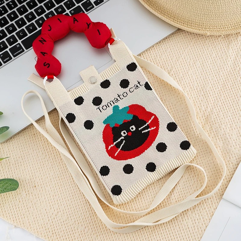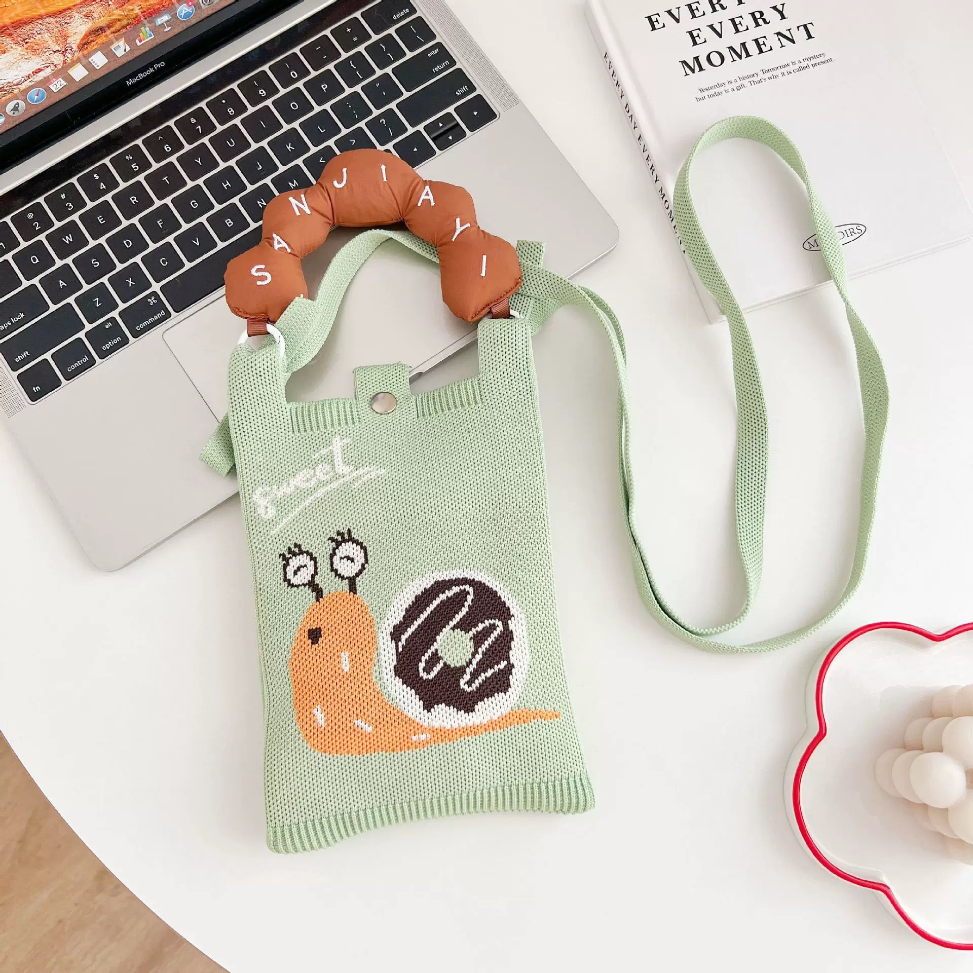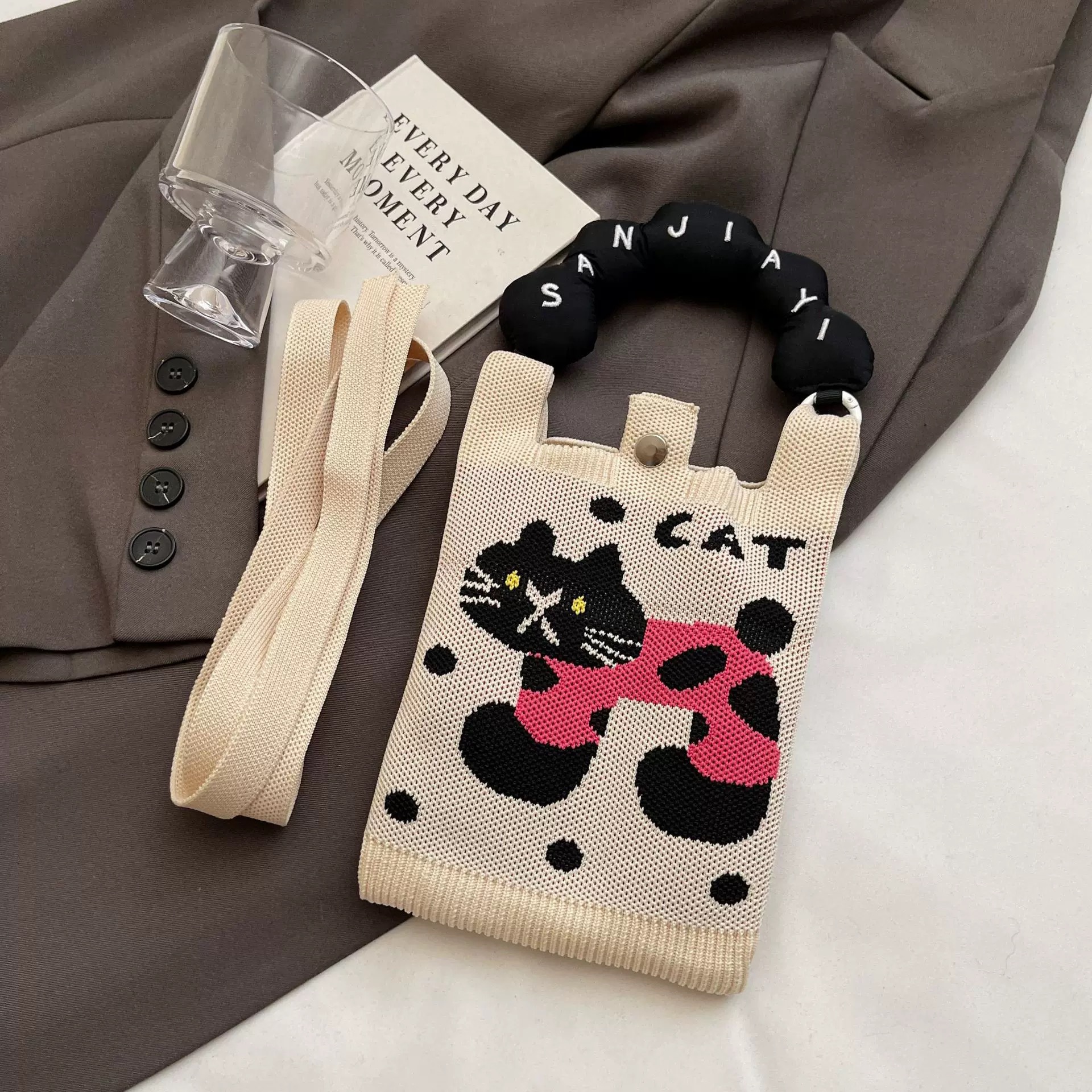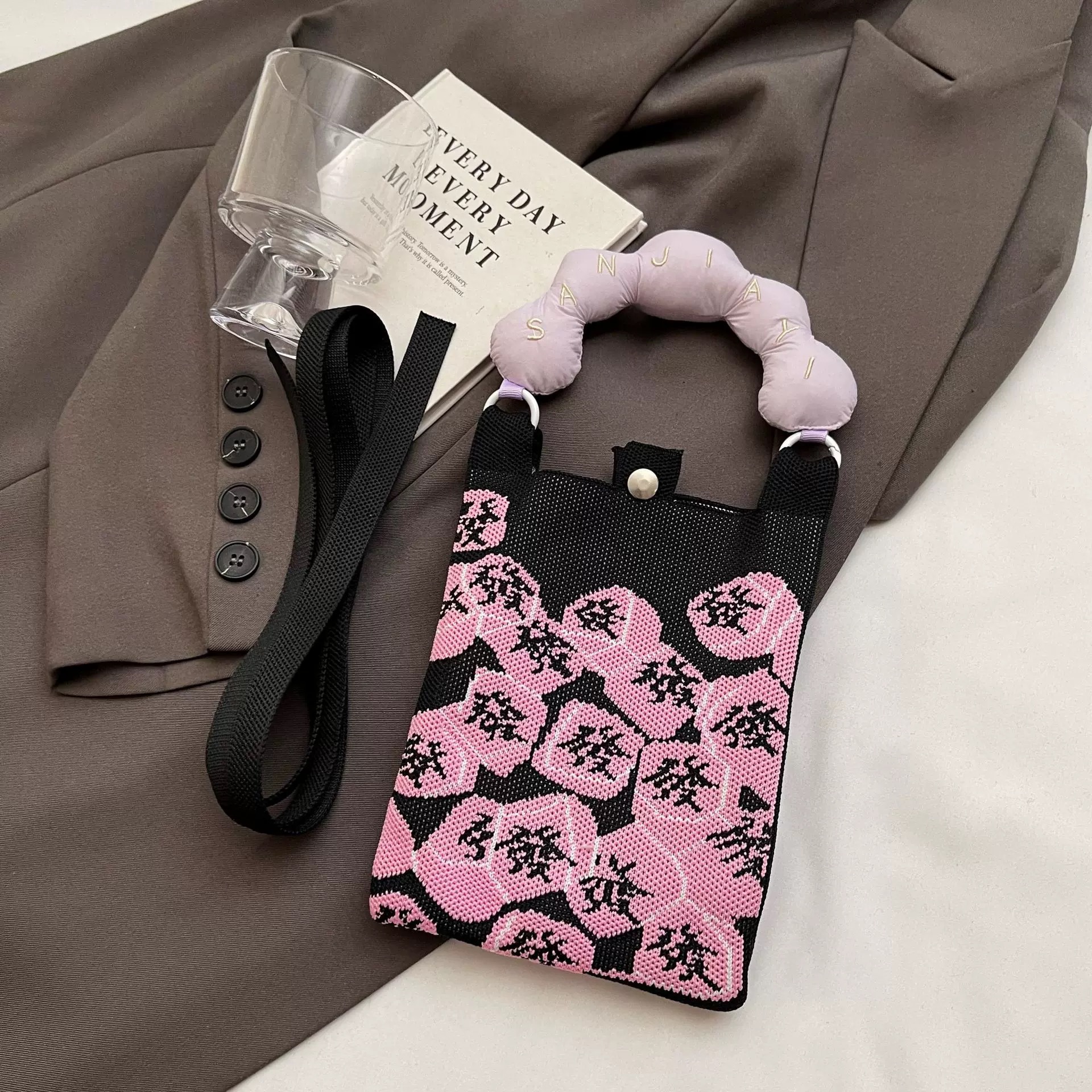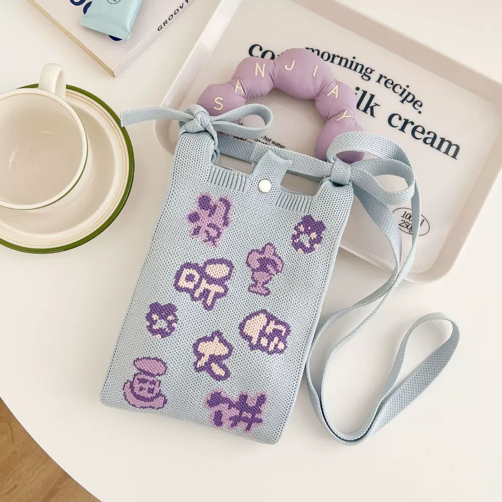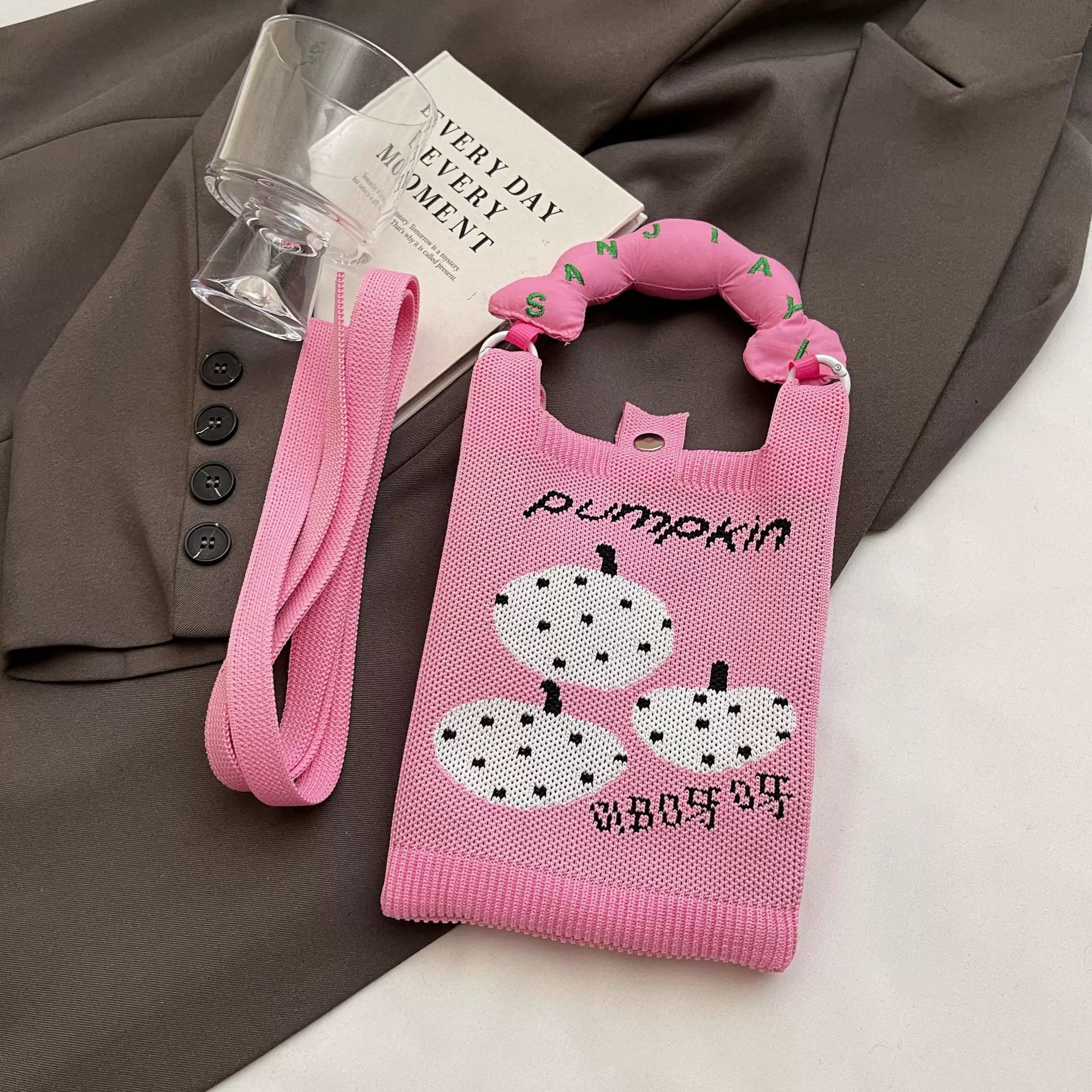 Корейская версия нишевых дизайн милый мультфильм мини вязаный мобильный телефон сумка дикая компактная портативная коммутирующаяся маленькая квадратная сумка