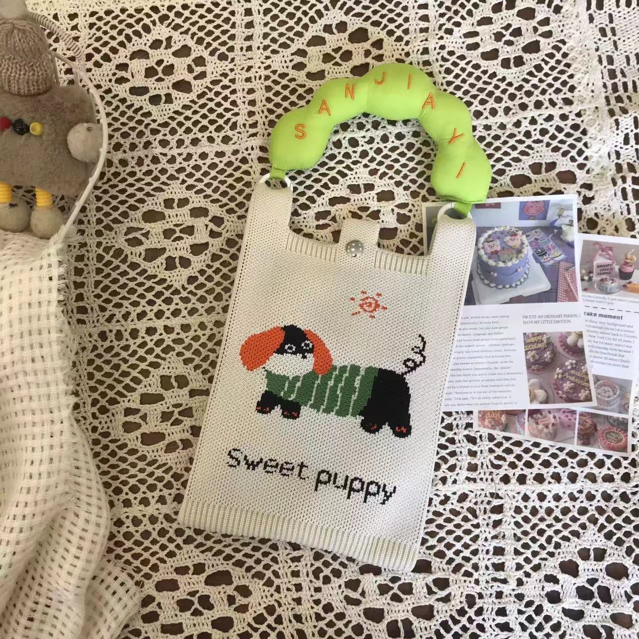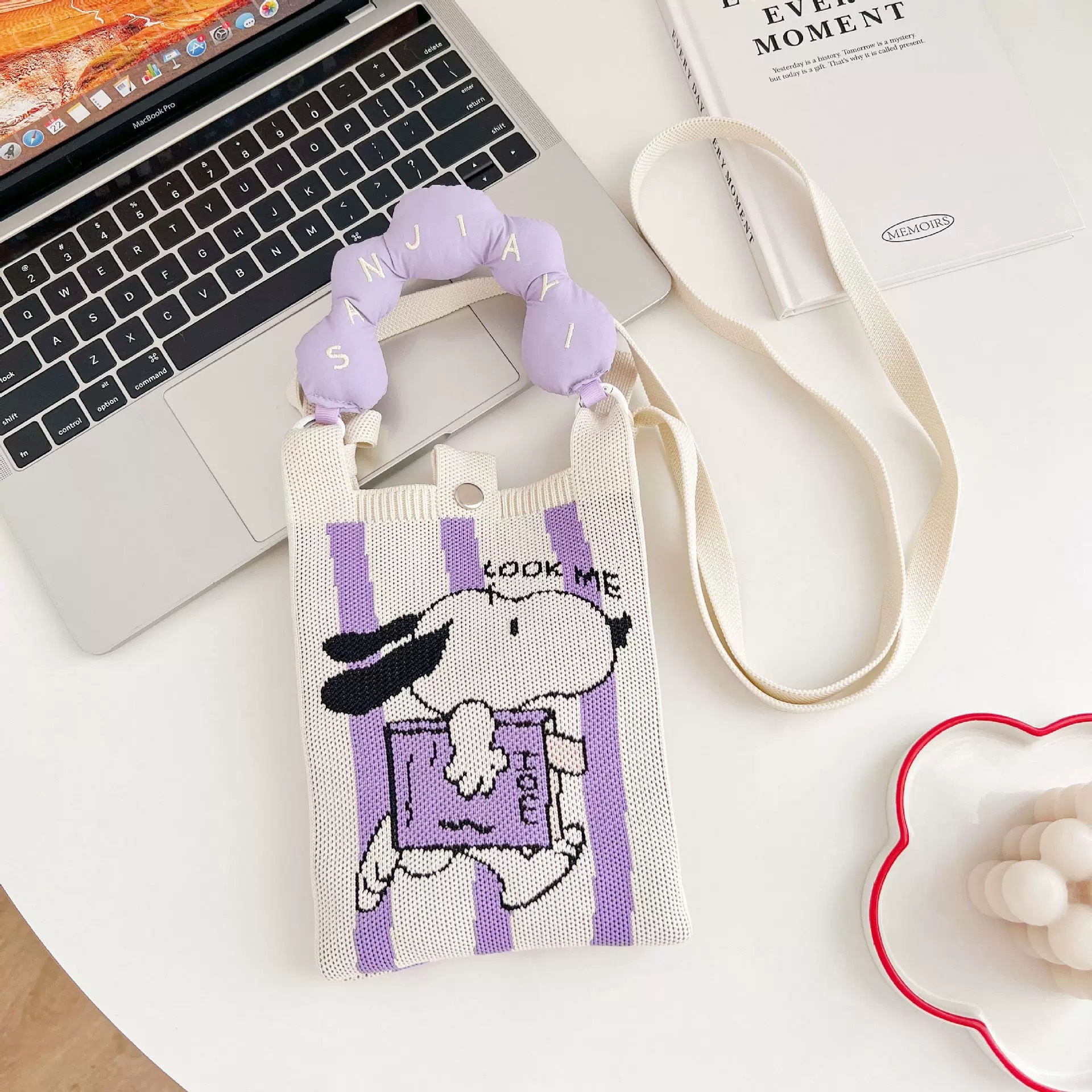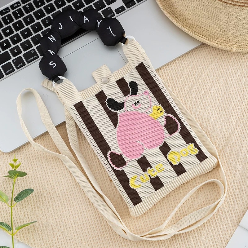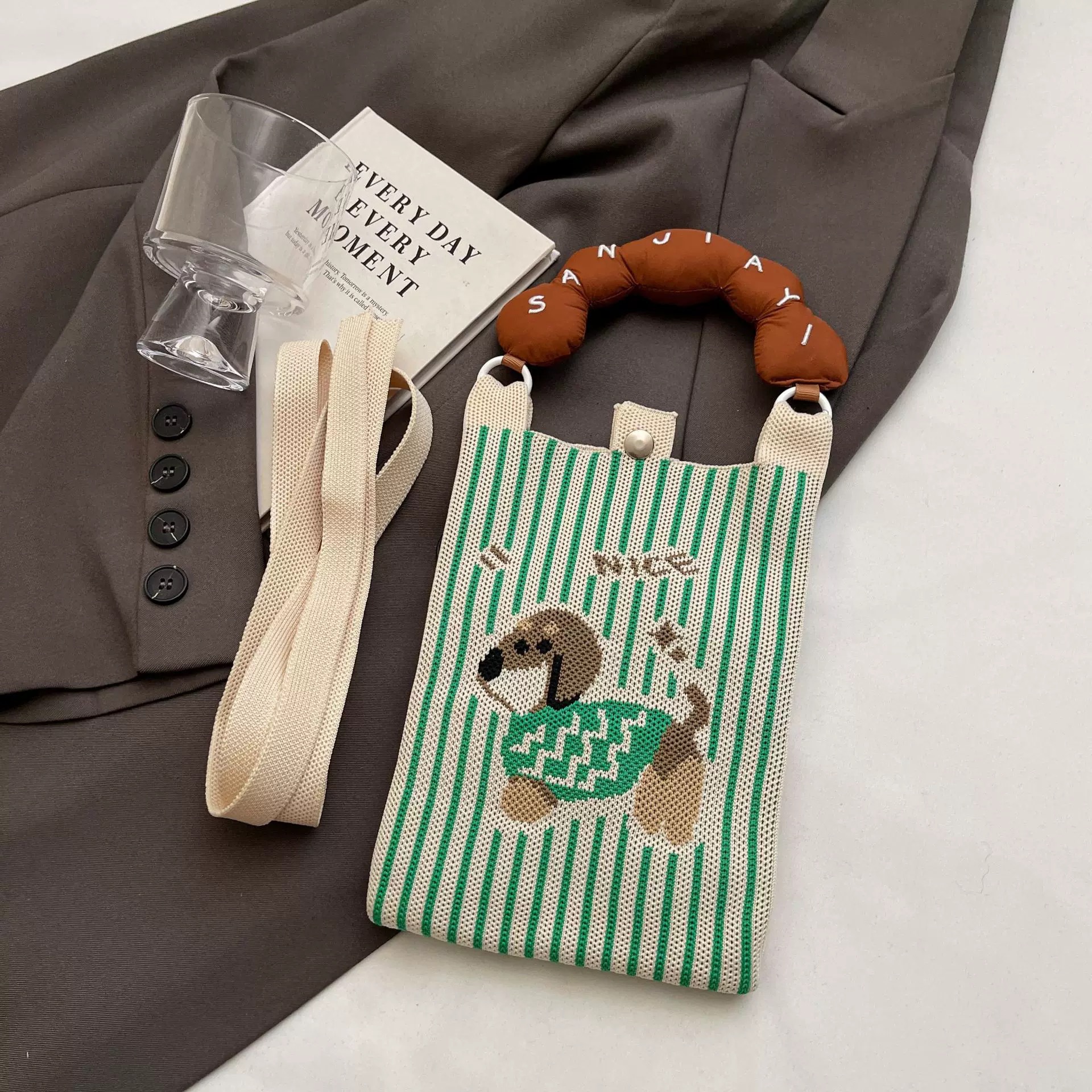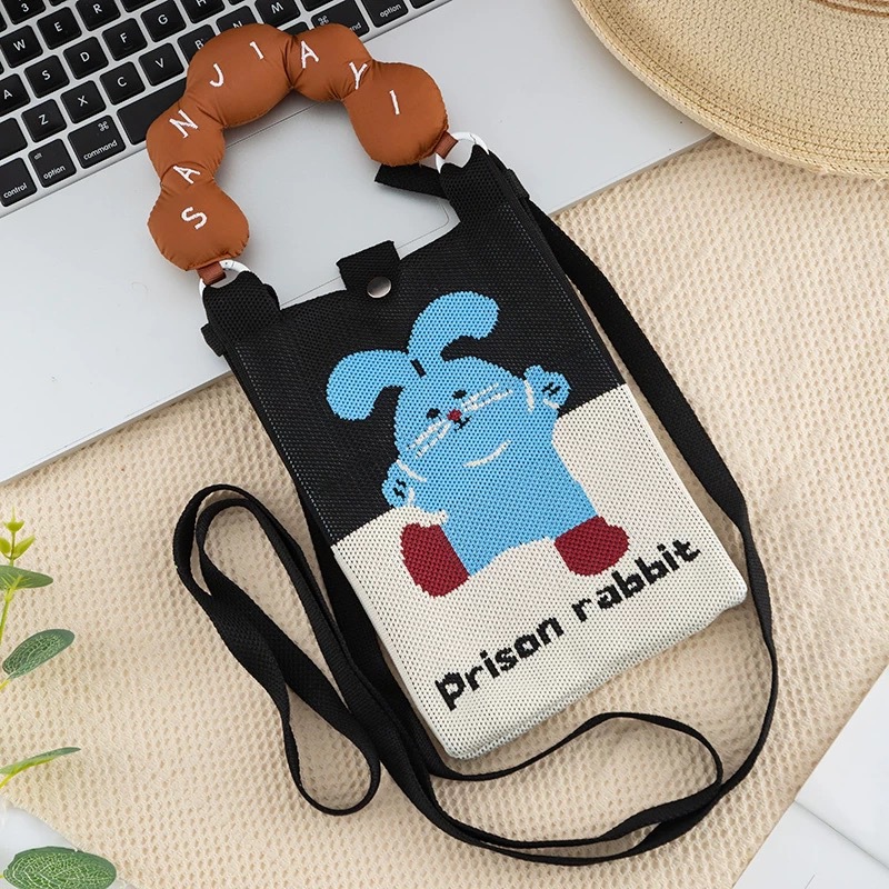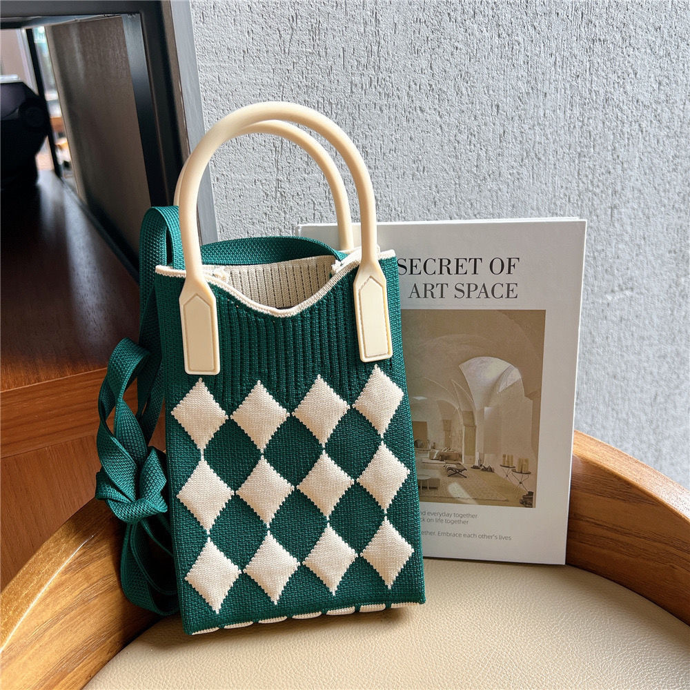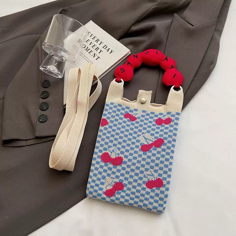 Корейская версия нишевых дизайн милый мультфильм мини вязаный мобильный телефон сумка дикая компактная портативная коммутирующаяся маленькая квадратная сумка