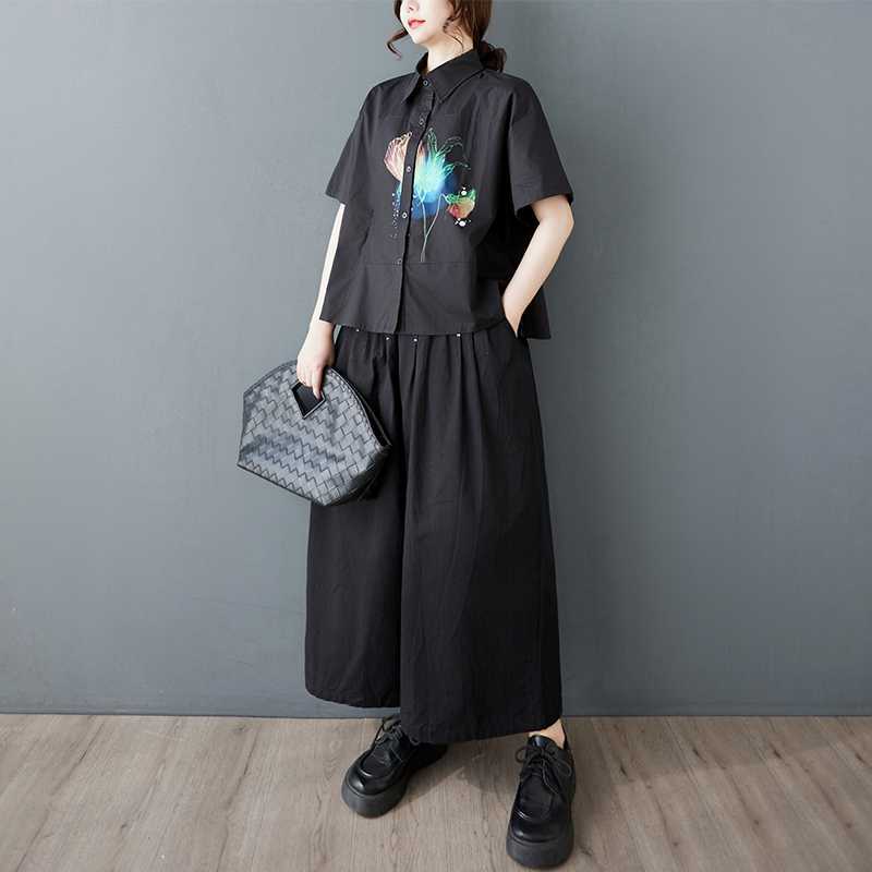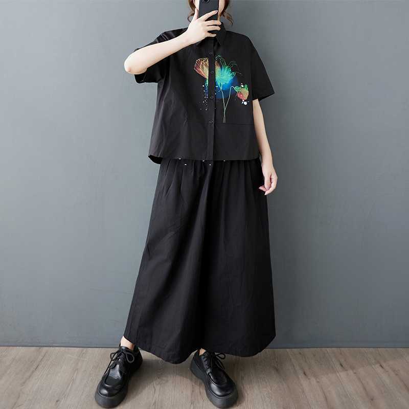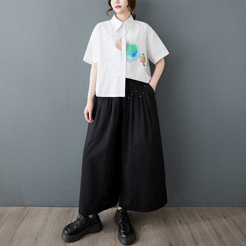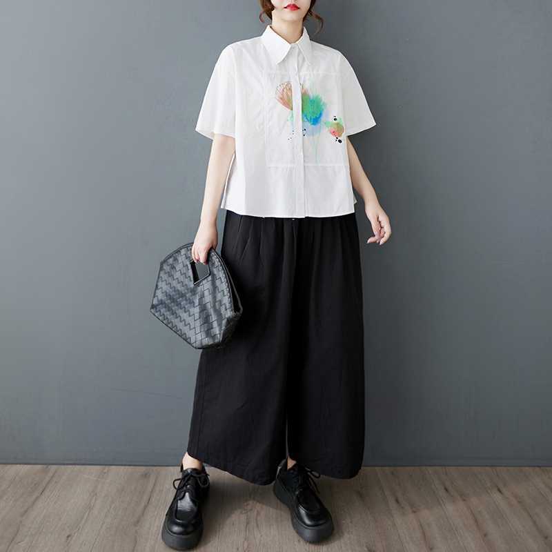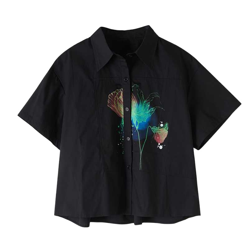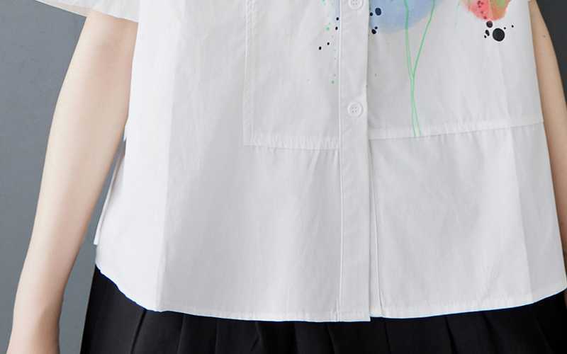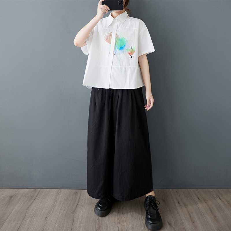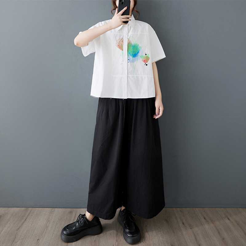 Новая летняя рубашка 2025 года в ретро стиле с принтом, короткий рукав, комбинированная, простая, стройнящая, для полных женщин, топ