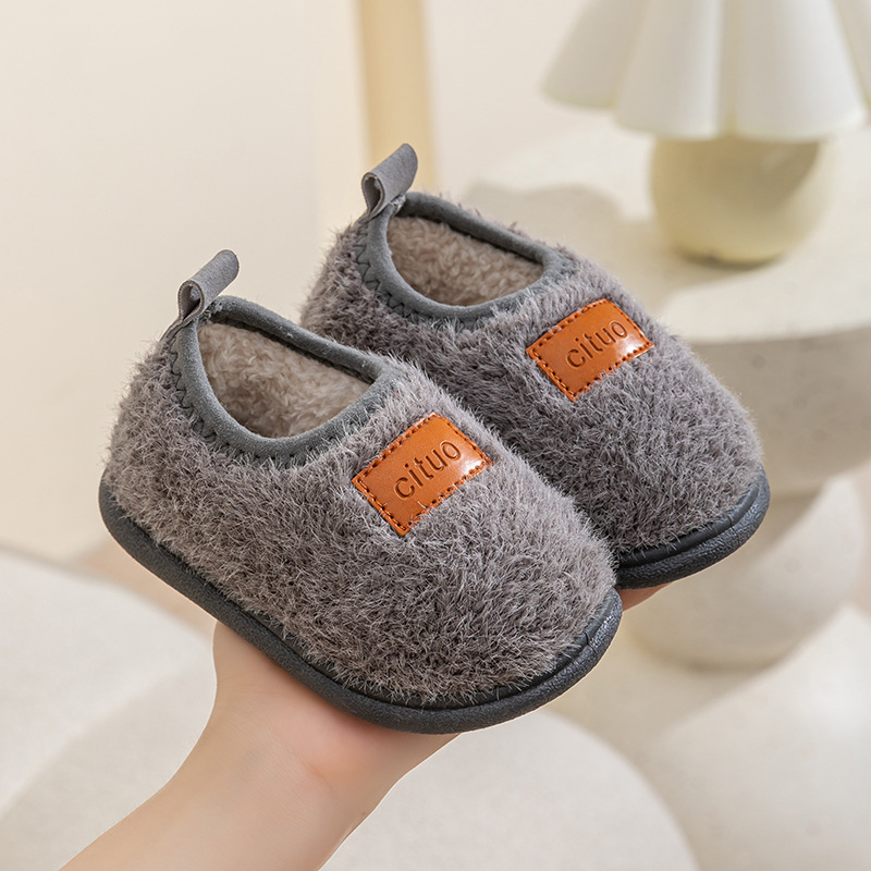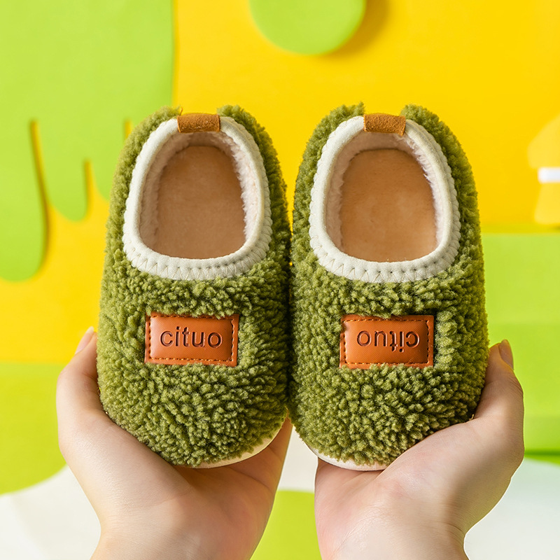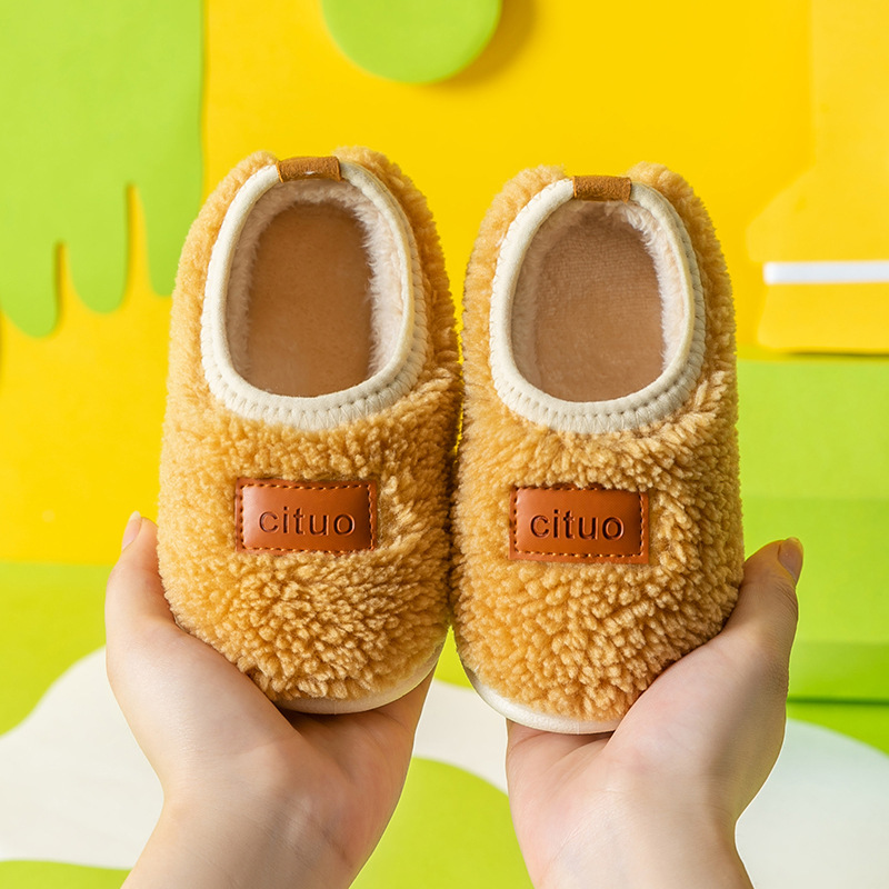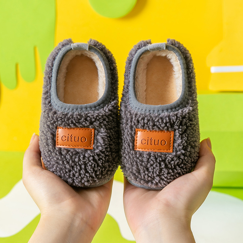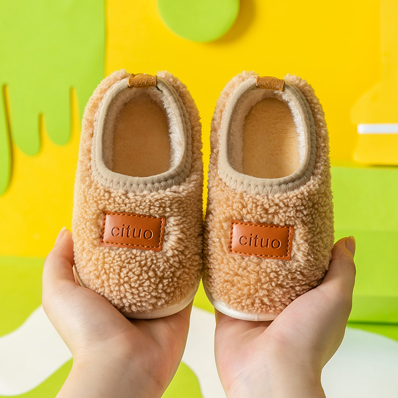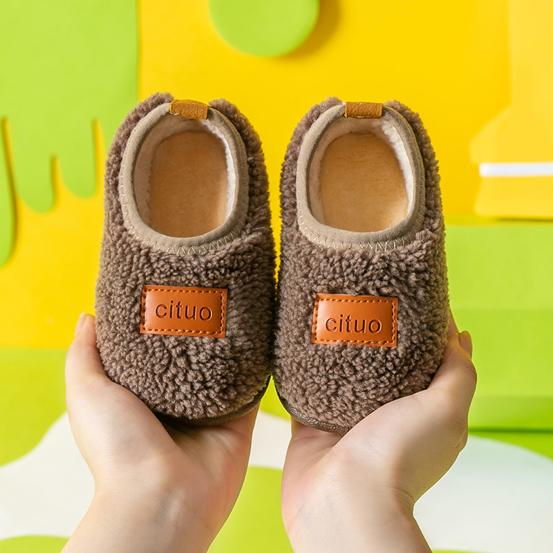 Детские домашние тапочки из искусственной овечьей шерсти для малышей на осень и зиму, закрытые хлопковые тапочки для детей