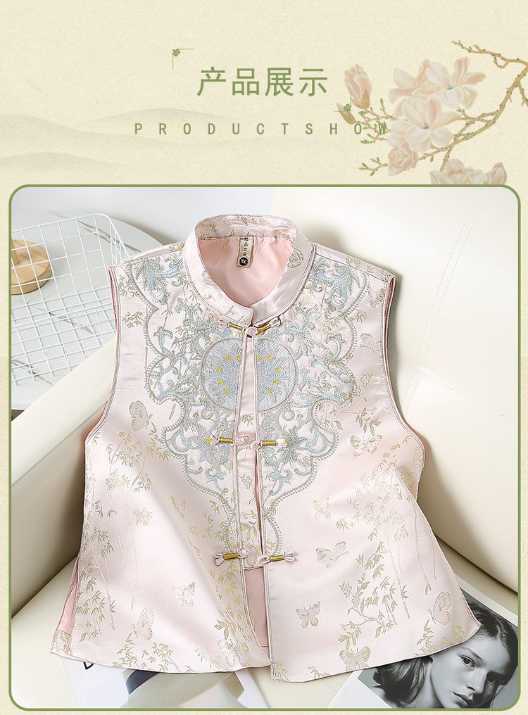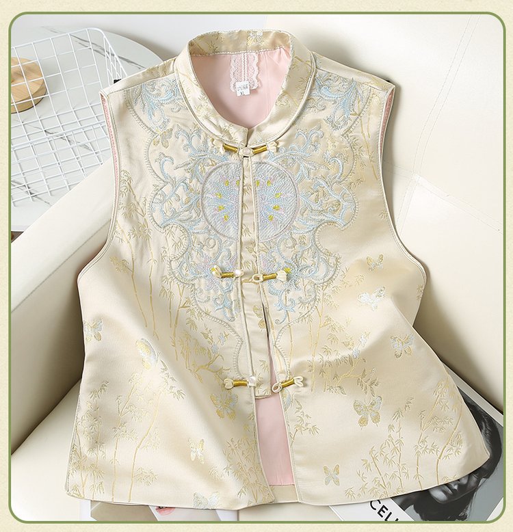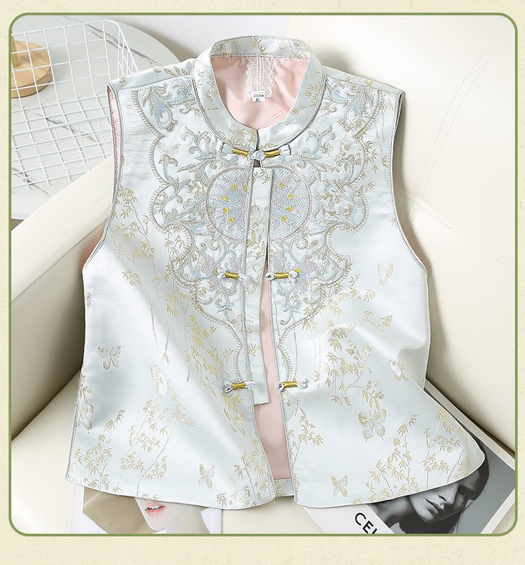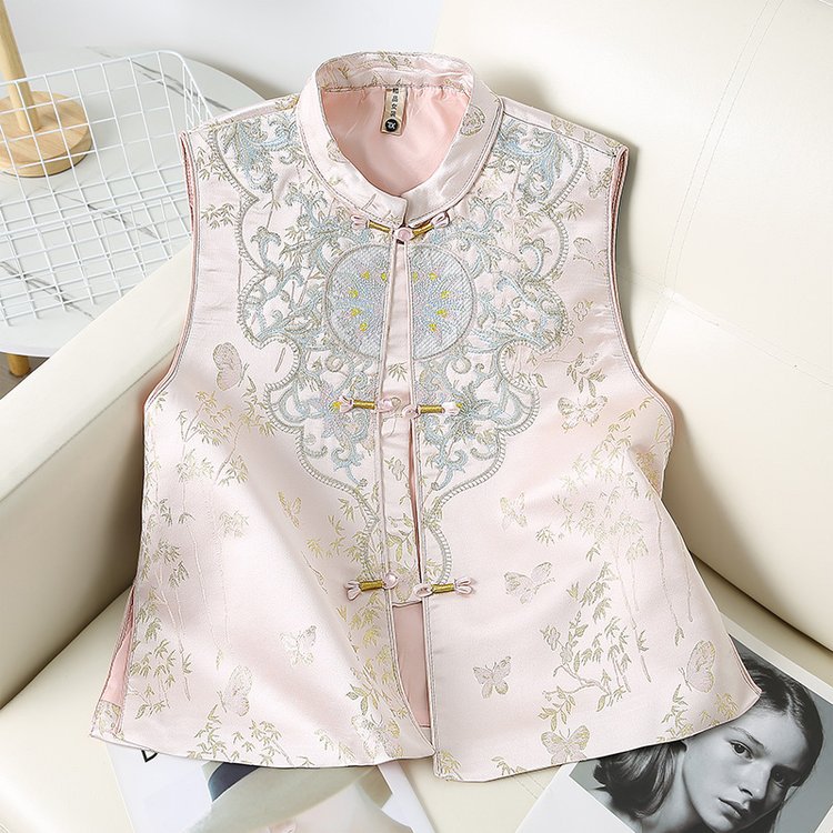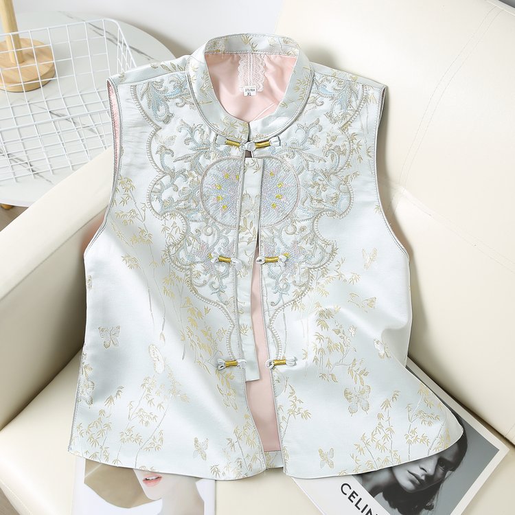 Новый китайский стиль национальный стиль вышитый жилет женская мода дикий пуговица жилет жилетка весна и осень мама новая куртка