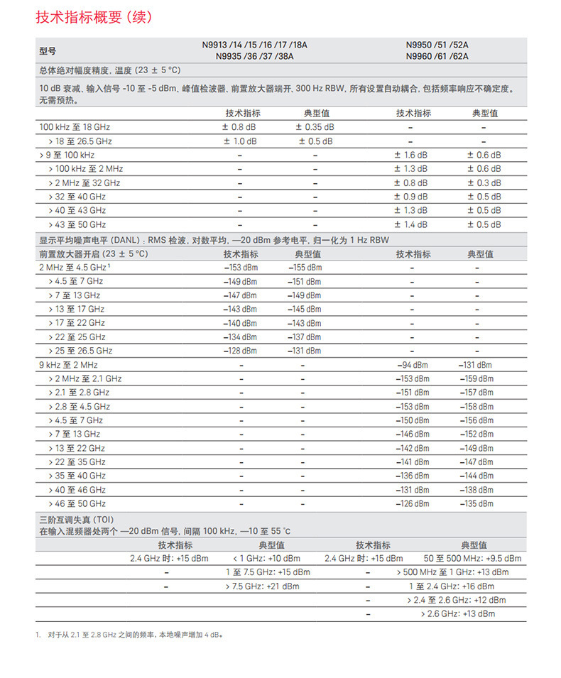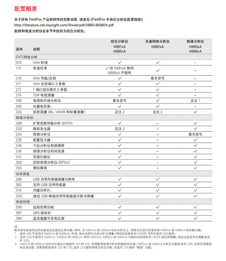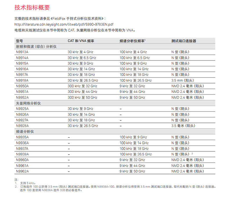 N9935A (портативный анализатор микроволнового спектра, 9 ГГц); N9936A (портативный анализатор микроволнового спектра, 14 ГГц); N9937A (портативный анализатор микроволнового спектра, 18 ГГц); N9938A (портативный анализатор микроволнового спектра, 26,5 ГГц); N9960A (9 кГц–32 ГГц); N9961A (9 кГц-44 ГГц); N9962A (9 кГц-50 ГГц)
