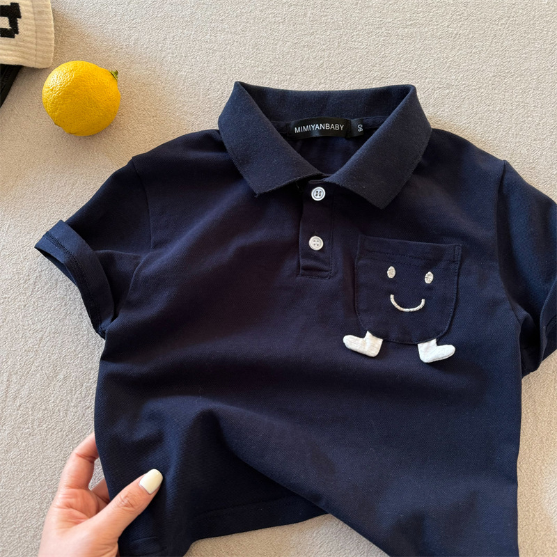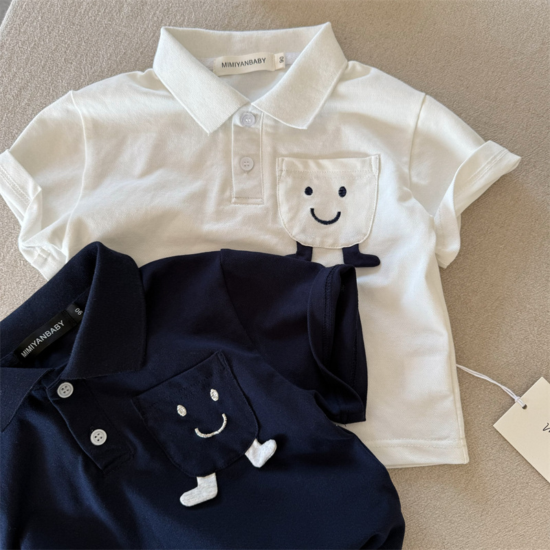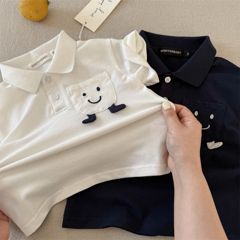 Детская футболка-поло 2026 с морщеными глазами, летняя новинка, мультяшный улыбающийся смайлик, футболка-поло для мальчиков и девочек, 3D, с коротким рукавом