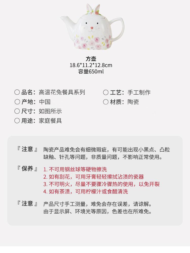 Кружка-Стандарт; 7inch Диск-Стандарт; Чашка-ушанка кролика-стандарт; Герметичная банка — стандартная; 4.5inch миски – стандартно; Квадратный горшок-стандарт; Комплект из 2 предметов: чашка + блюдце-стандарт